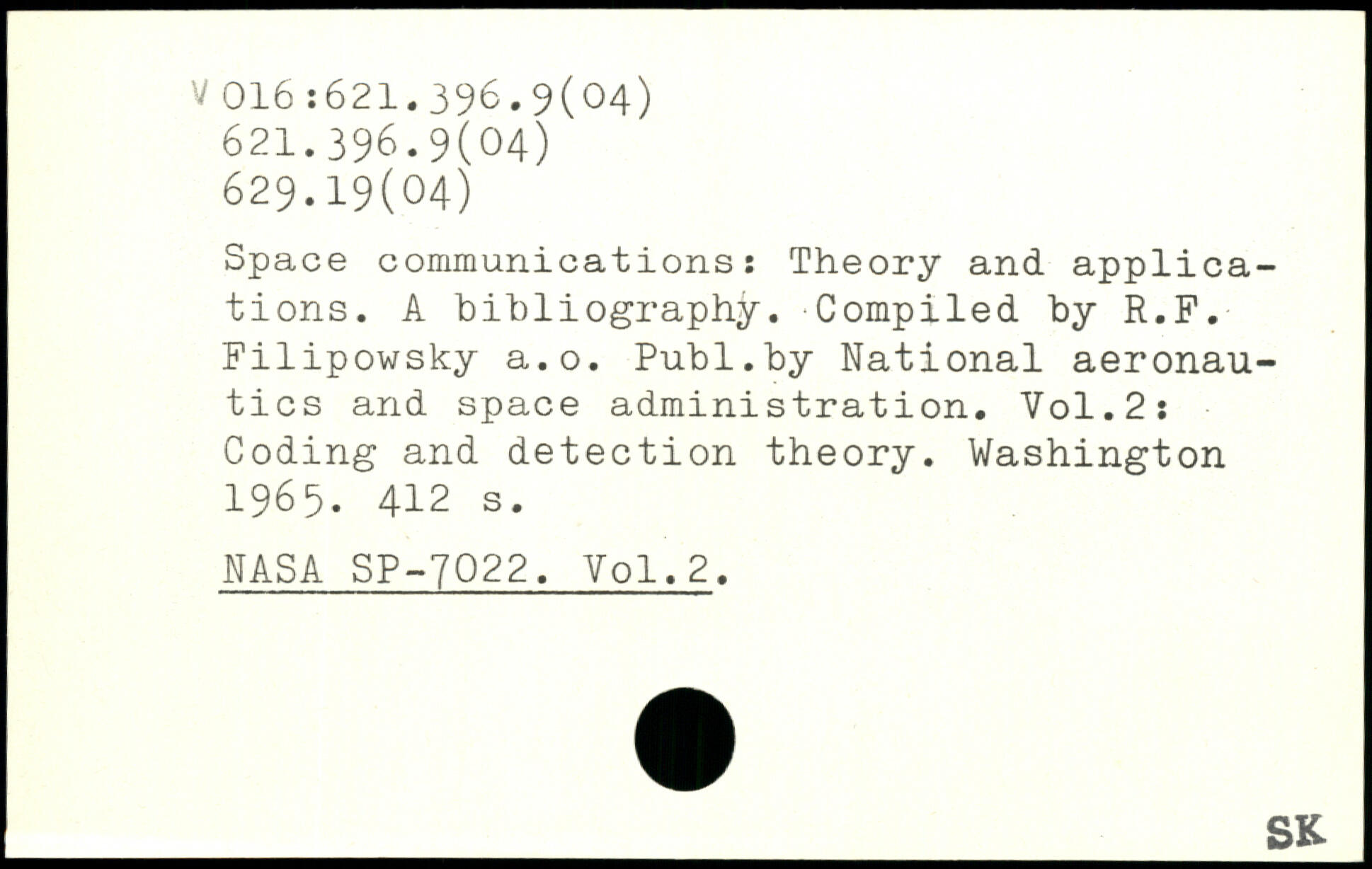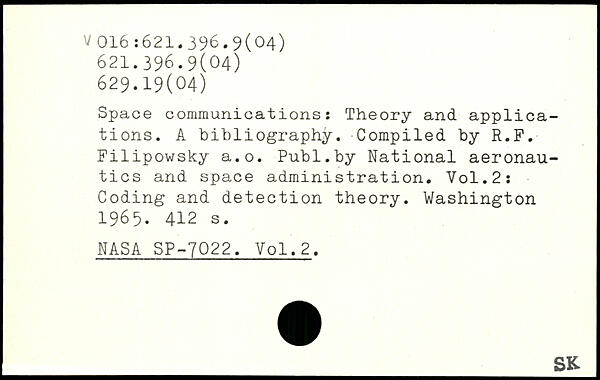 Space communications: Theory and applications. A bibliography. Compiled by R.F. Filipowsky a.o.