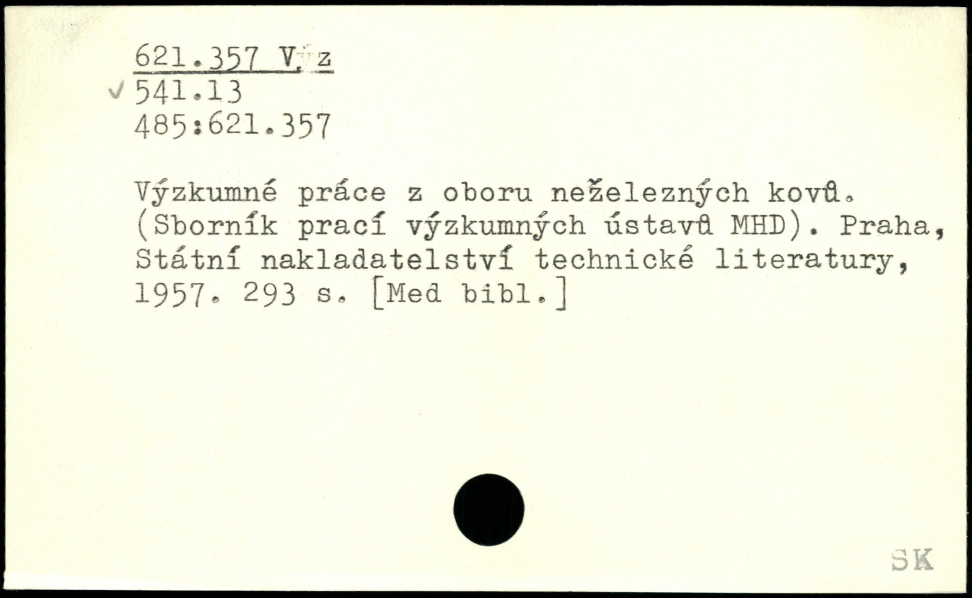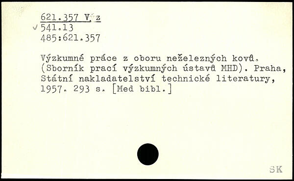 Vyzkumné prâce z oboru nezeleznÿch kovâ, (Sbornlk praci vÿzkumnÿch ustavd MHD). Praha, Stâtni nakladatelstvl technické literatury, 1957