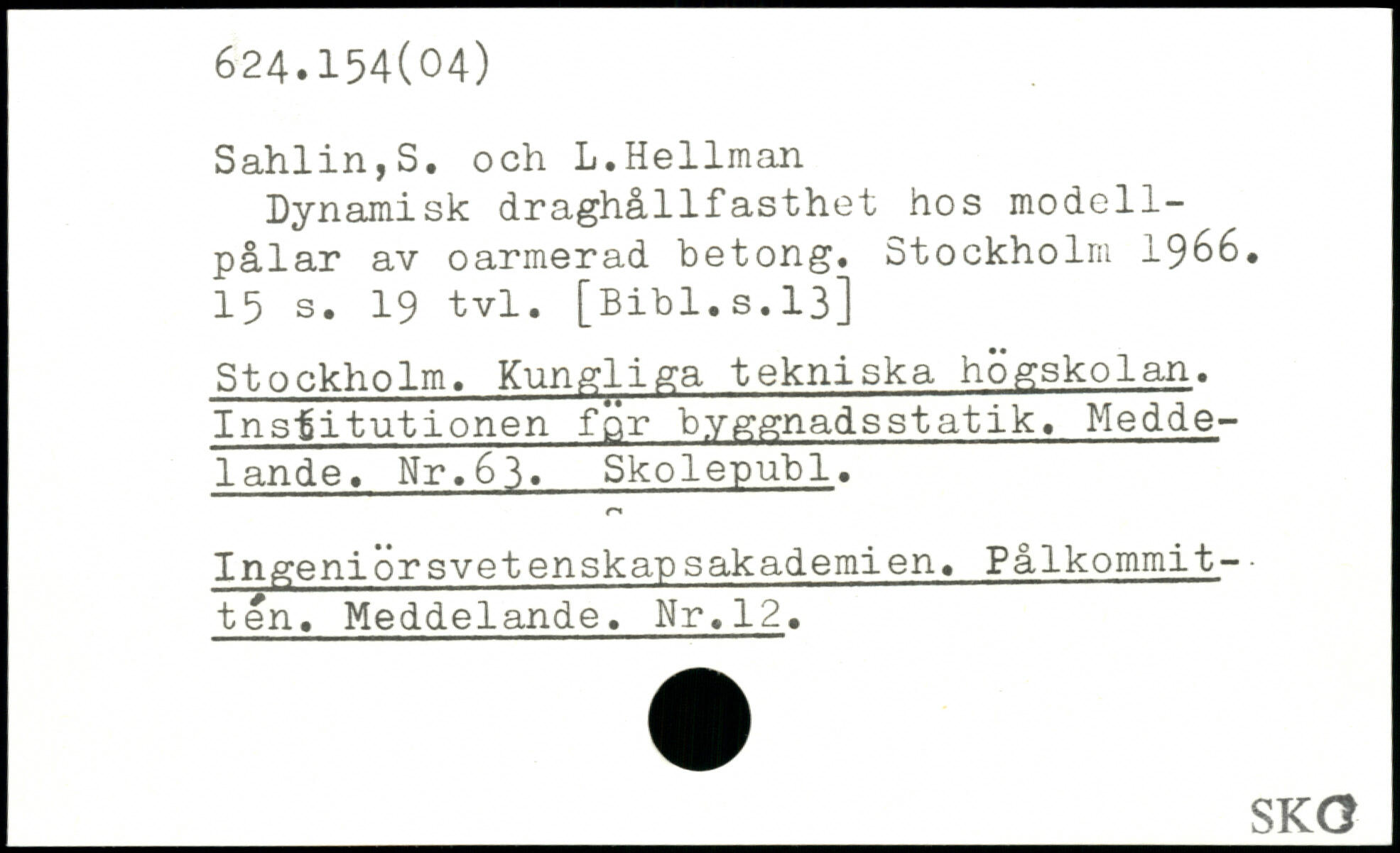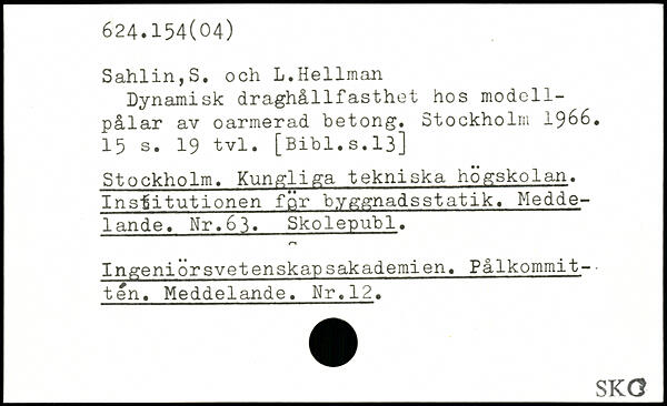 Dynamisk draghållfasthet hos modellpålar av oarmerad betong.