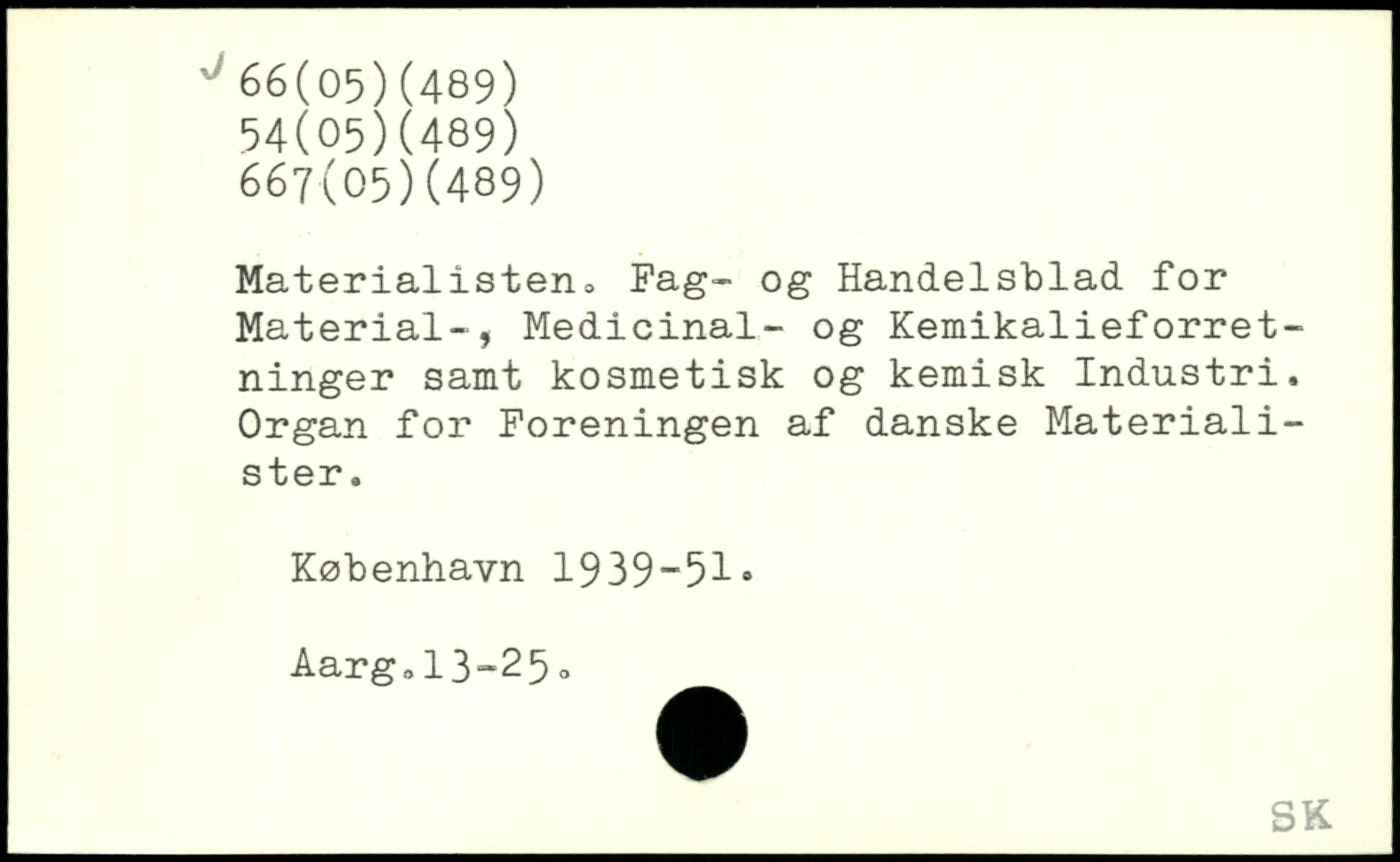 Materialisten, Fag- og Handelsblad for Material-, Medicinal- og Kemikalieforretninger samt kosmetisk og kemisk Industri. Organ for Foreningen af danske Materialister.