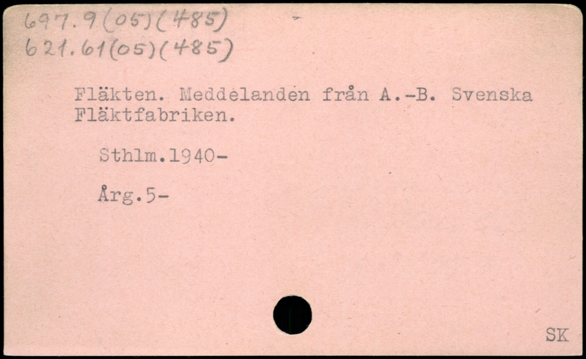 w-KoinctHts) - ~. <oZi.(o1(pS)(+%S) Fläkten. Meddelanden från A.-B. Svenska Fläktfakriken. Sthlm.1940- Årg.5-