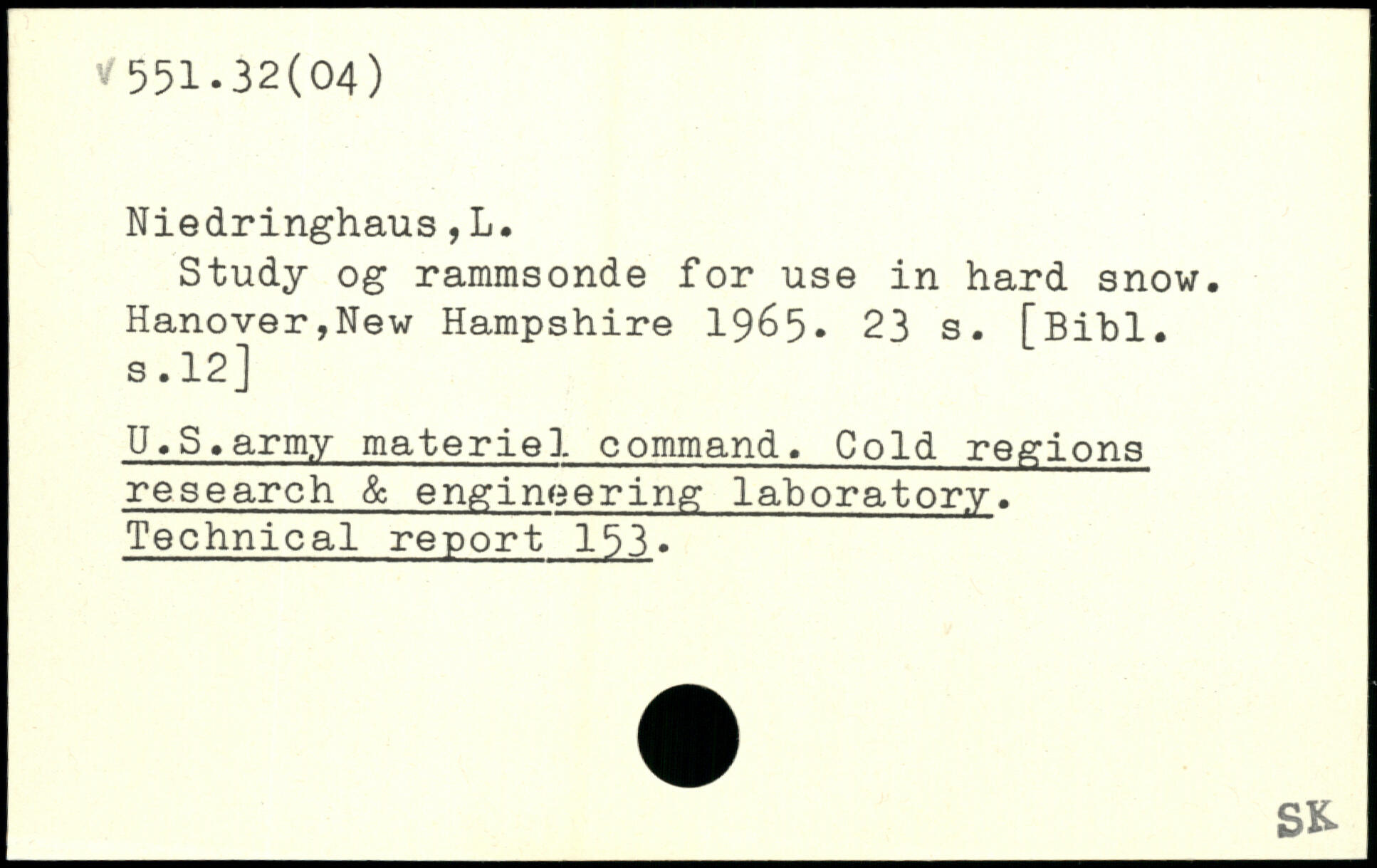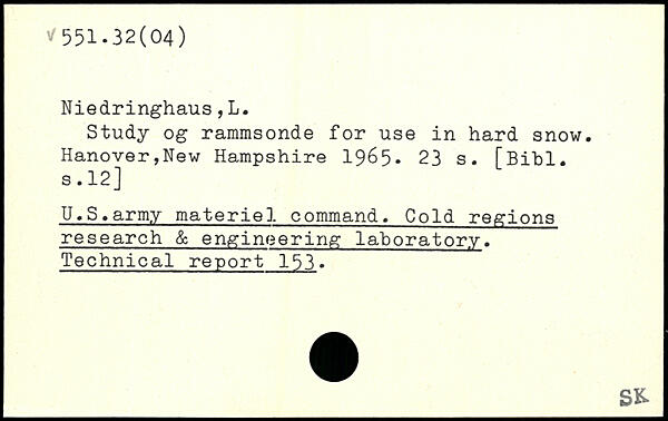 Study og rammsonde for use in hard snow. Hanover,New Hampshire 1965
