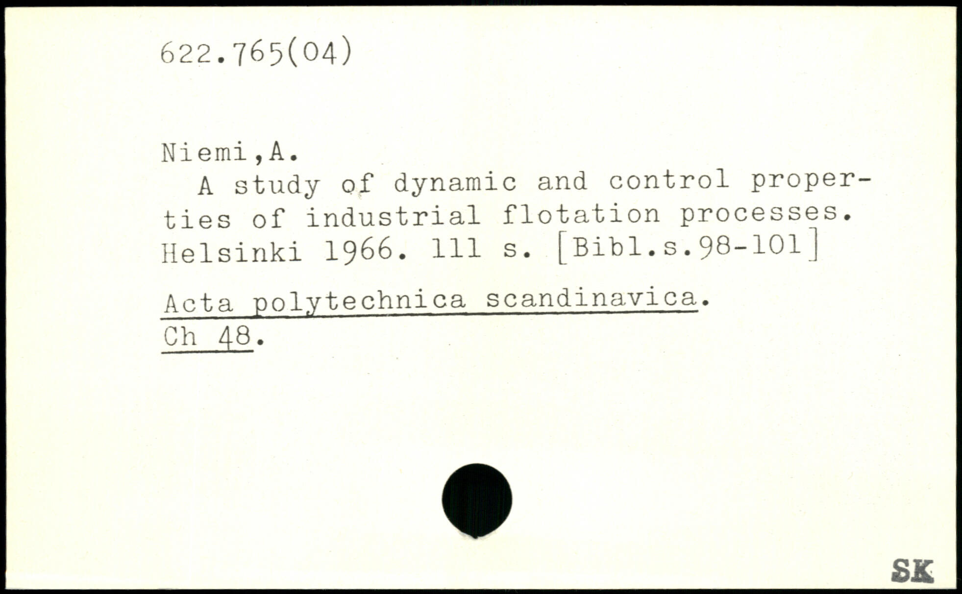 A study of dynamic and control properties of industrial flotation processes.