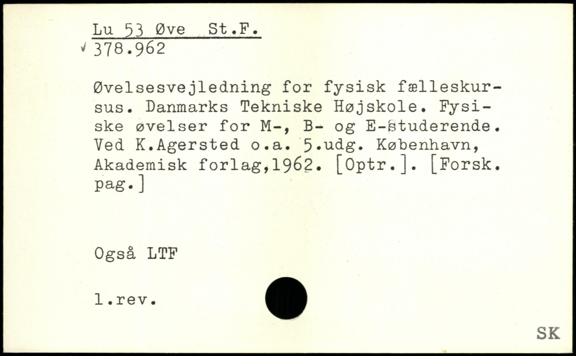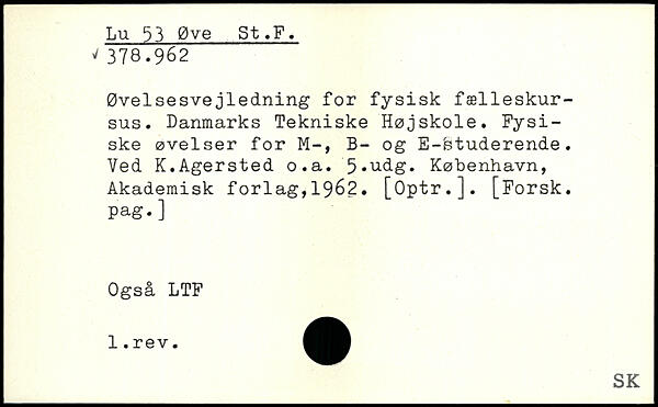 Øvelsesvejledning for fysisk fælleskursus. Danmarks Tekniske Højskole. Fysiske øvelser for M-, B- og E-btuderende. Ved K.Agersted o.a. uåg.
