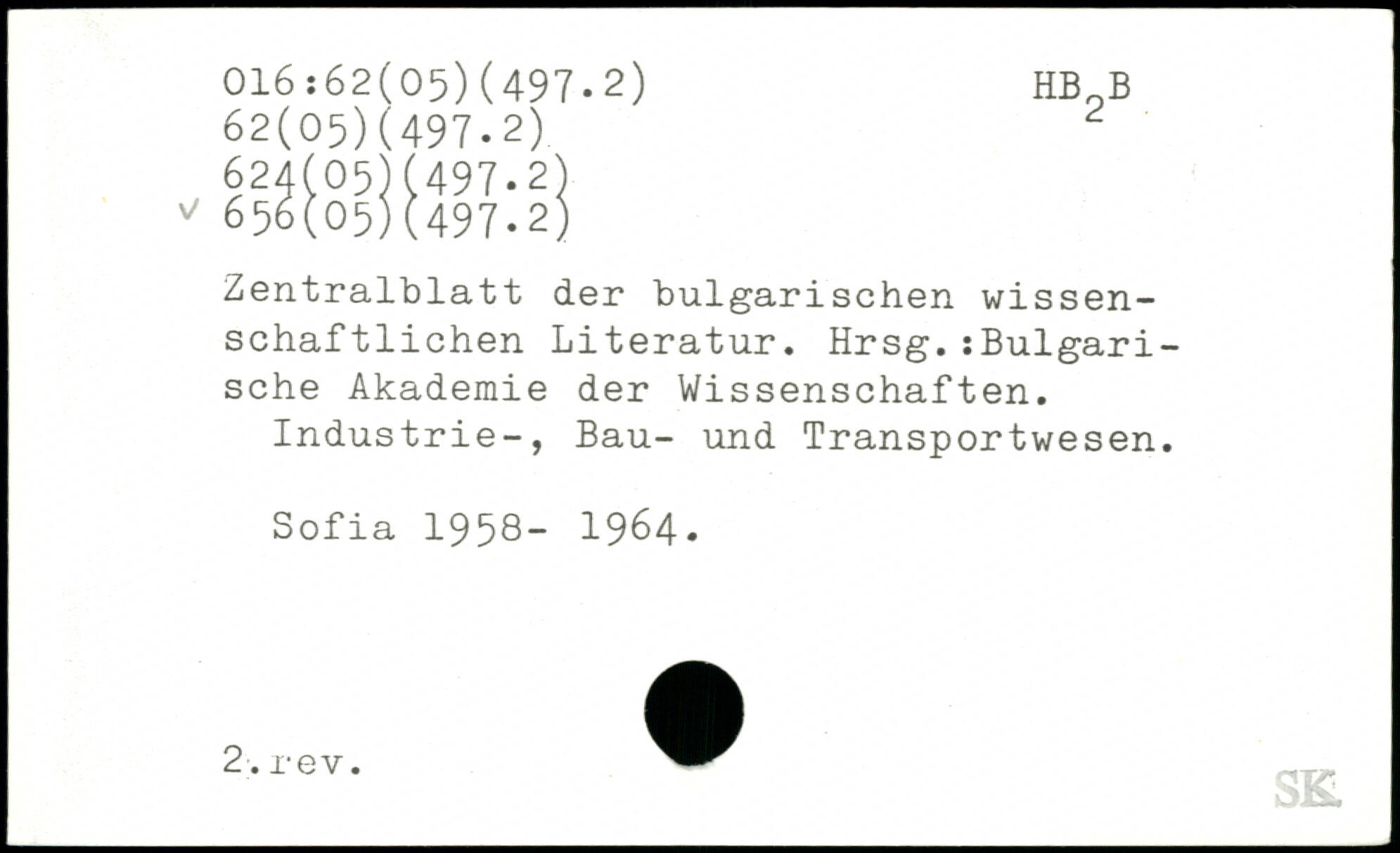 Zentralblatt der bulgarischen wissenschaftlichen Literatur. Hrsg.:Bulgari-sche Akademie der Wissenschaften. Industrie-, Bau- und Transportwesen. Sofia 1958- 1984- 2.,.. — SE