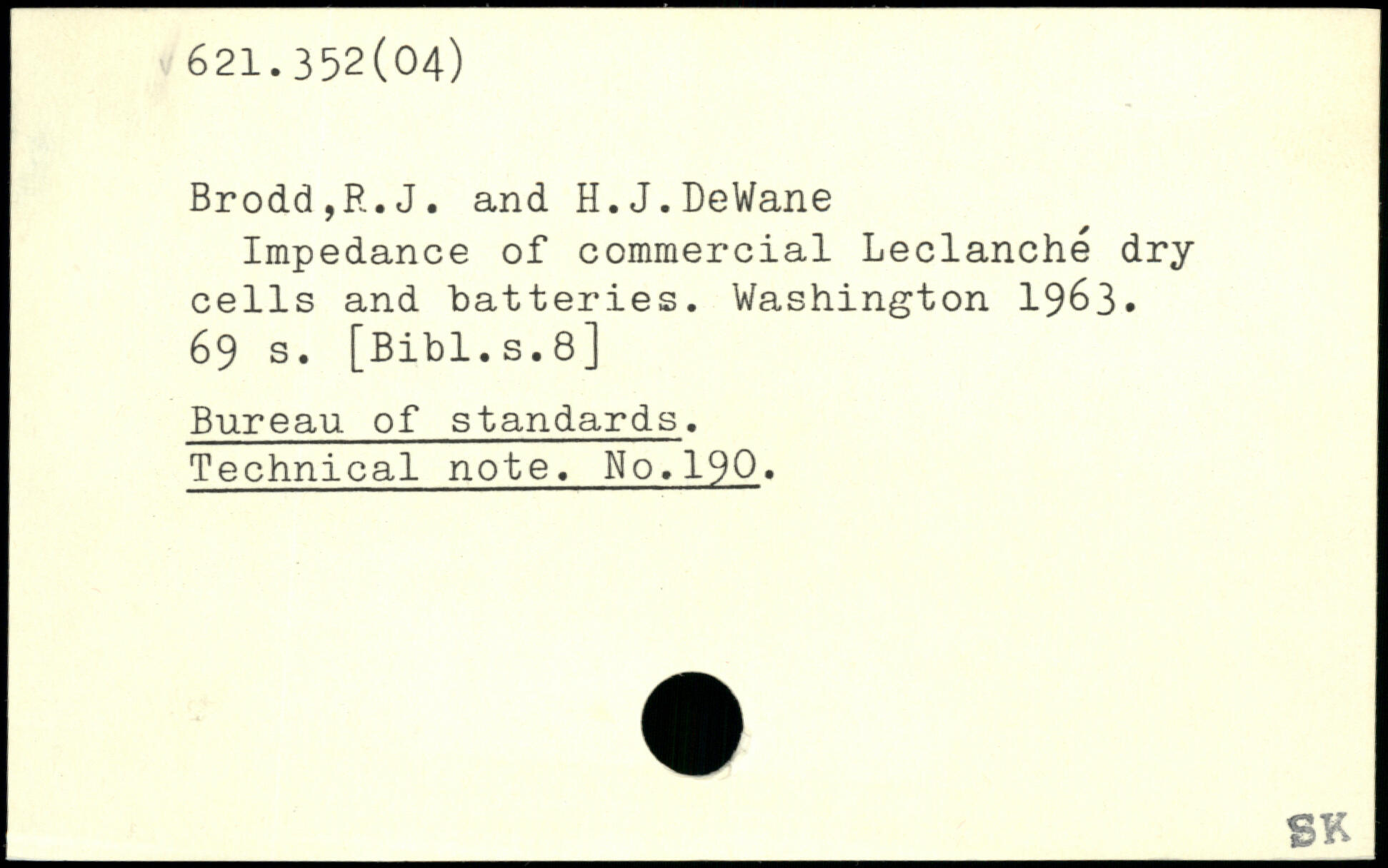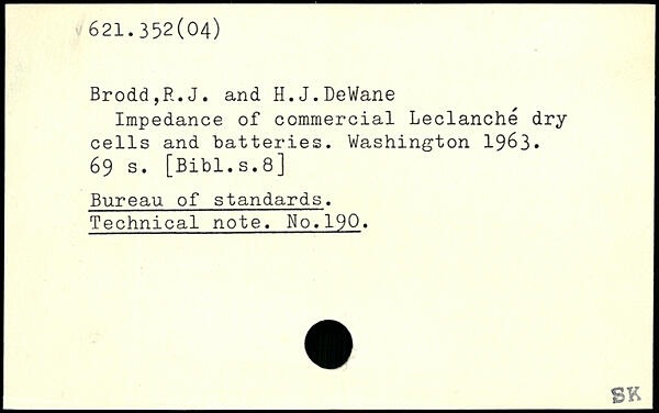 Impedance of commercial Leclanche dry cells and batteries. Washington 19&3.