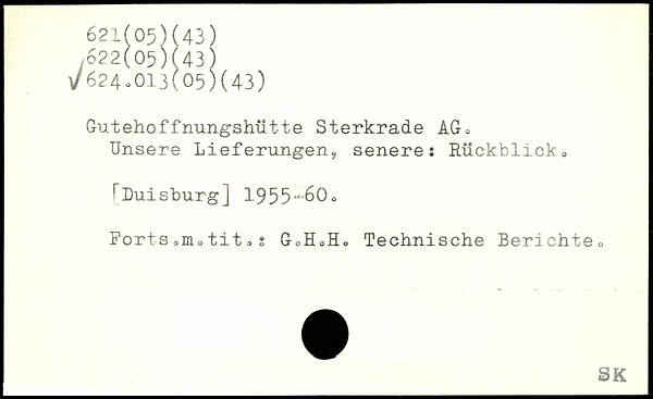 Gutehoffnungshütte Sterkrade AG, Unsere Lieferungen, senere: Rückblick, ("Duisburg] 1955^60. Ports.m.tit.s GoHoH, Technische Berichte