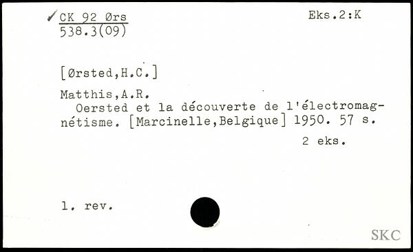 Oersted et la decouverte de 1'electromag-nétisme. [Marcinelle,Belgique] 1950.