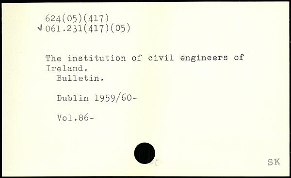 The institution of civil engineers of Ireland, Bulletin, Dublin 1959/60-
