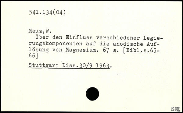 Uber den Einfluss verschiedener Legierungskomponenten auf die anodische Auflösung von Magnesium.
