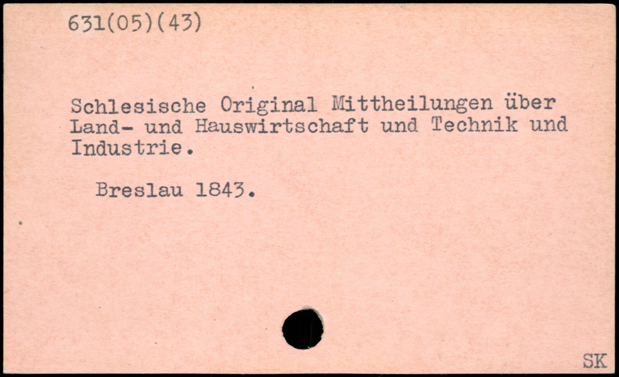 Schlesische Original Mittheilungen über Land- und Hauswirtschaft und Technik und Industrie. Breslau 1843.