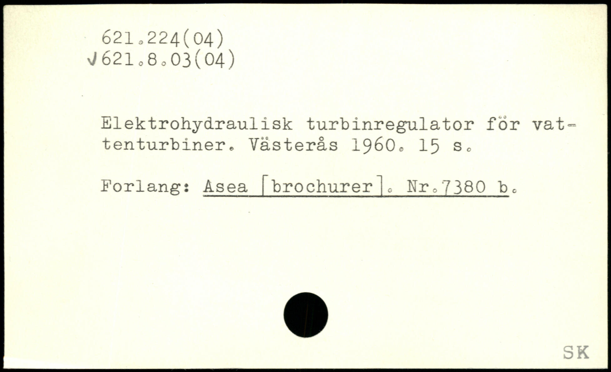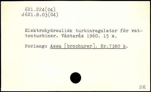 Elektrohydraulisk turbinregulator for vat-tenturbiner. Västerås 1960® I