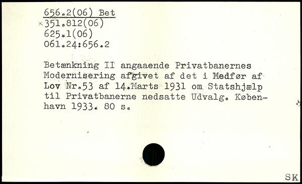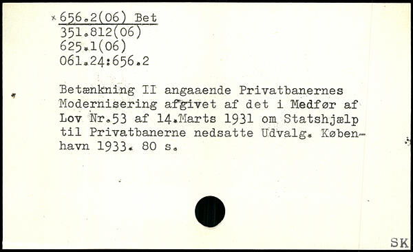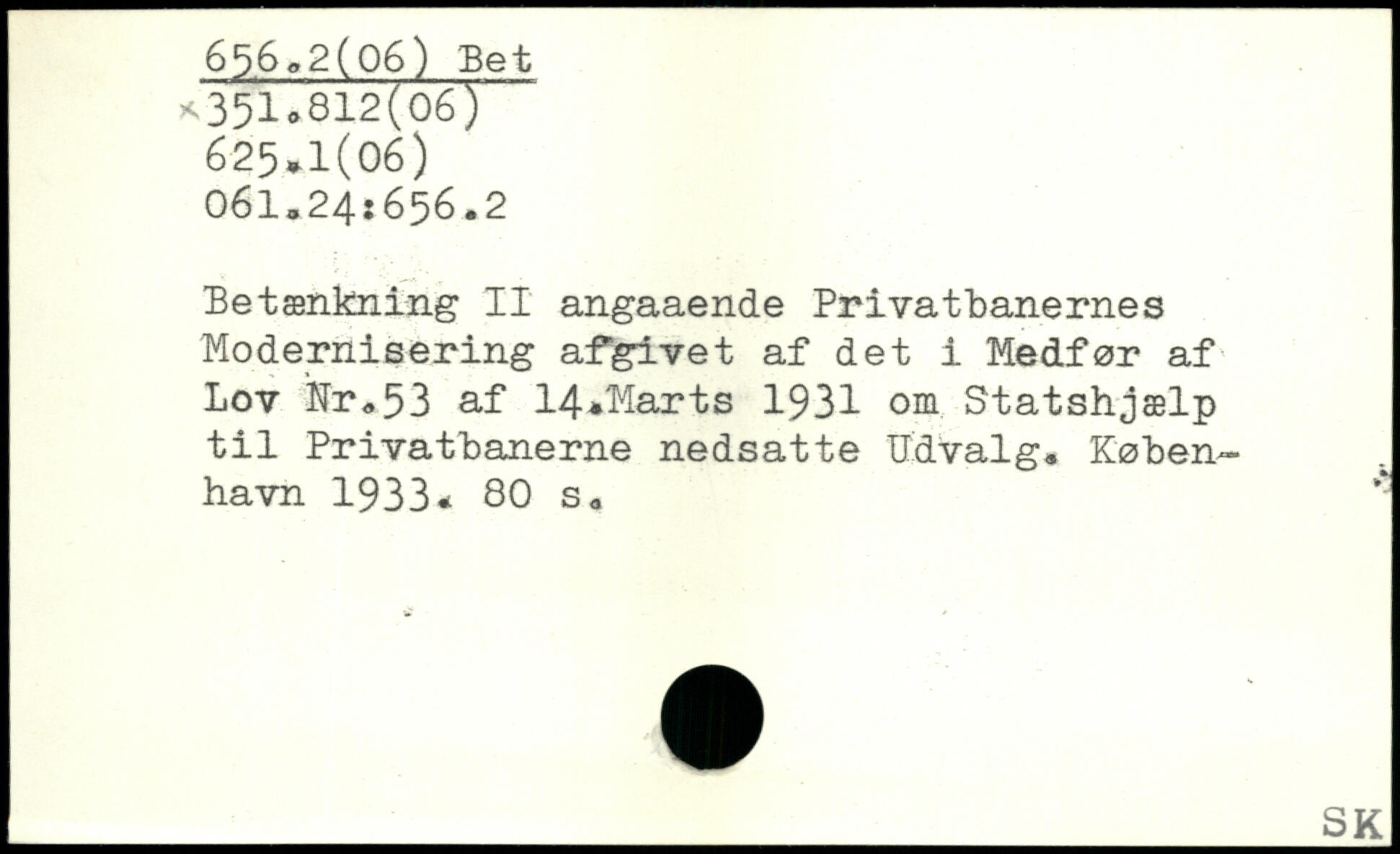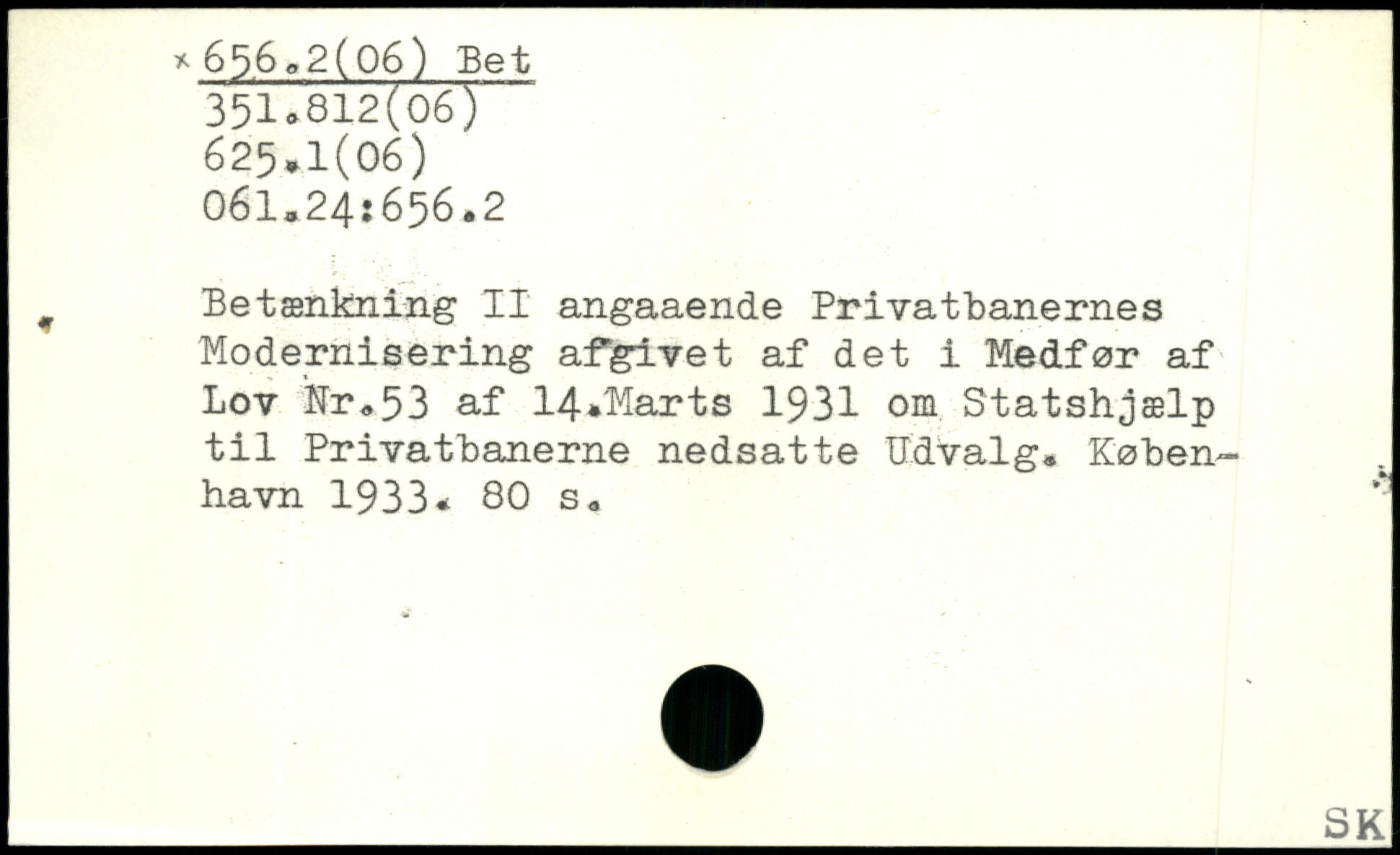 # Betænkning II angaaende Privatbanernes Modernisering afgivet af det i Medfør af Lov Nr.53 af 14.Marts 1931 om Statshjælp til Privatbanerne nedsatte Udvalg.