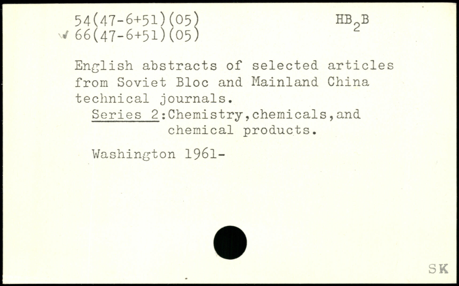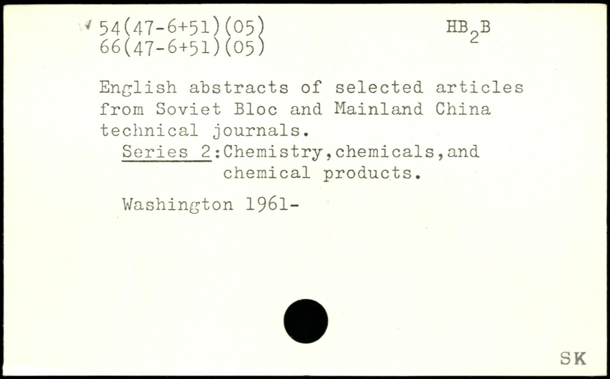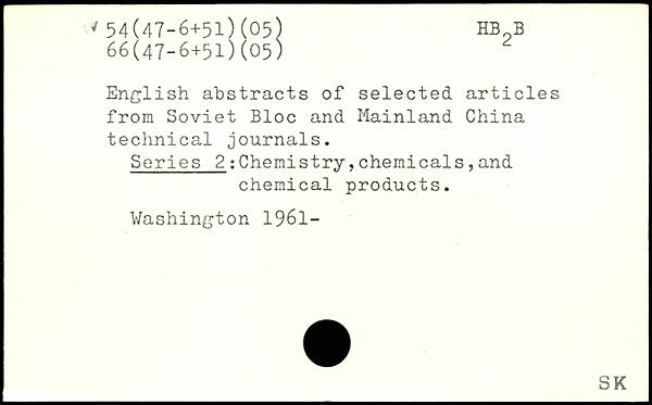 English abstracts of selected articles from Soviet Bloc and Mainland China technical journals. Series 2:Chemistry,chemicals,and chemical products.