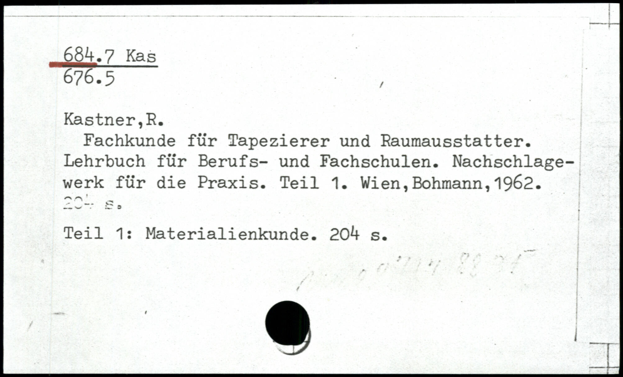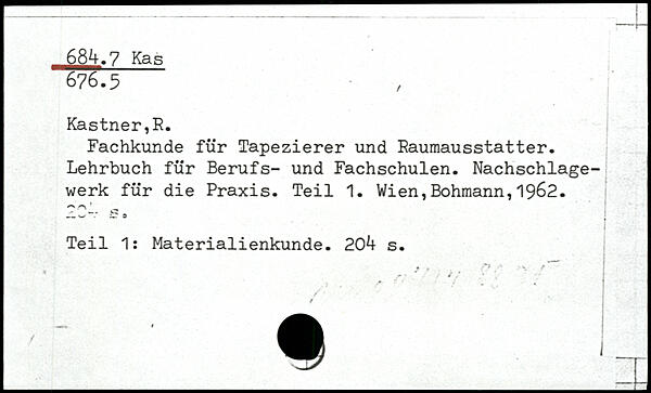Fachkunde für Tapezierer und Raumausstatter. Lehrbuch für Berufs- und Fachschulen. Nachschlagewerk für die Praxis. Teil 1.