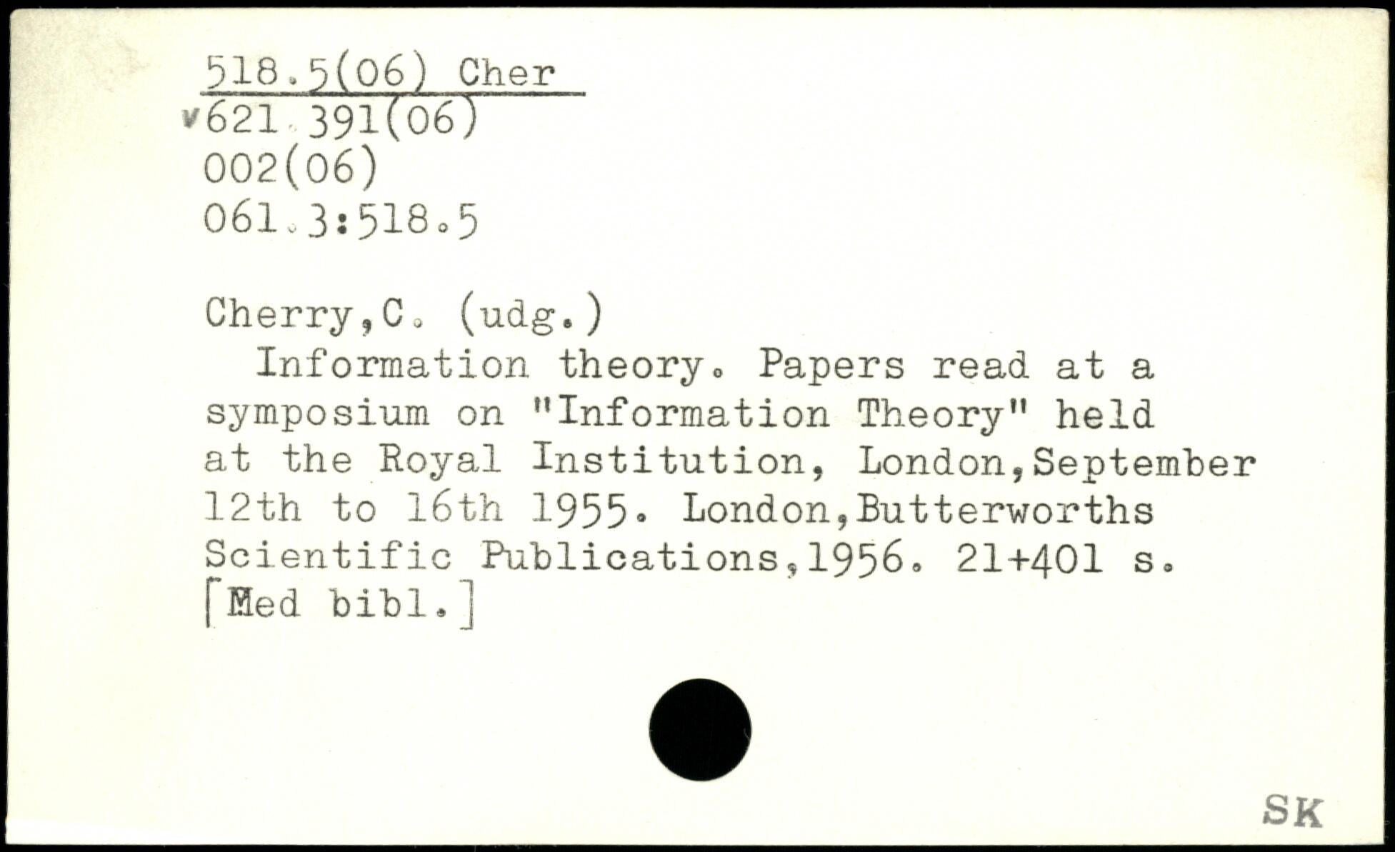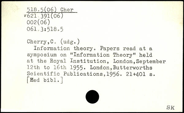 Information theory. Papers read at a symposium on "Information Theory" held at the Royal Institution, London,September 12th to 16th 1955.