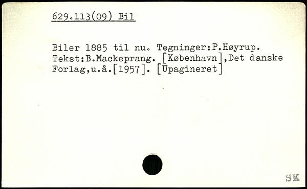 Biler 1885 til nu, Tegninger:P.Høyrup. Tekst:B.Mackeprang.