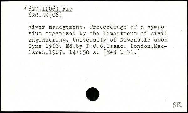 River management. Proceedings of a symposium organized by the Department of civil engineering, University of Newcastle upon Tyne 1966. Ed.by P.C.G.Isaac.