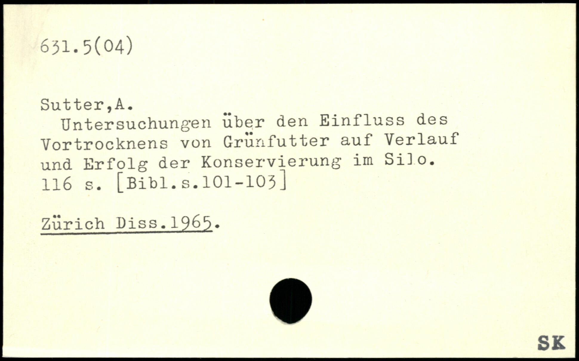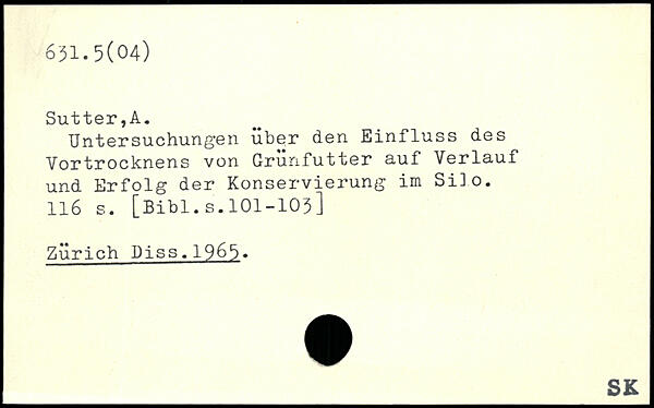 Untersuchungen über den Einfluss des Vortrocknens von Grunfutter auf Verlauf und Erfolg der Konservierung im Siüo.
