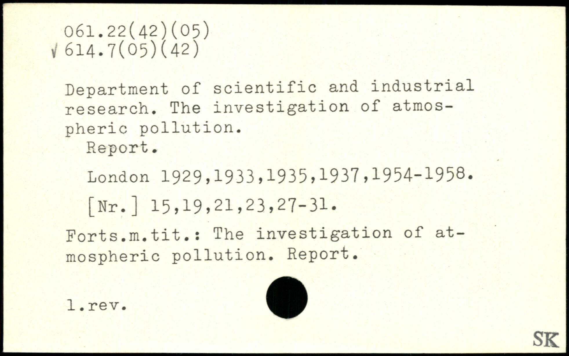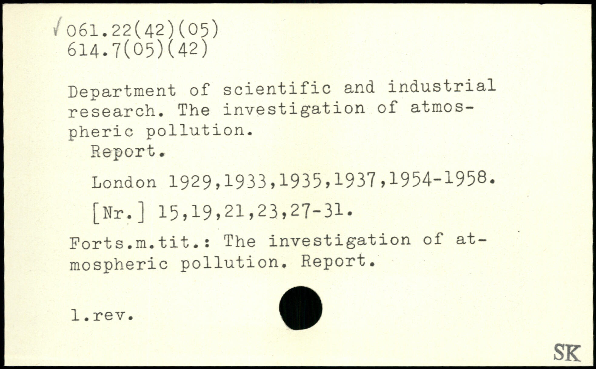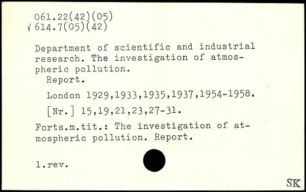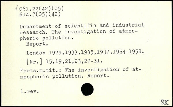 Department of scientific and industrial research. The investigation of atmospheric pollution. Report.