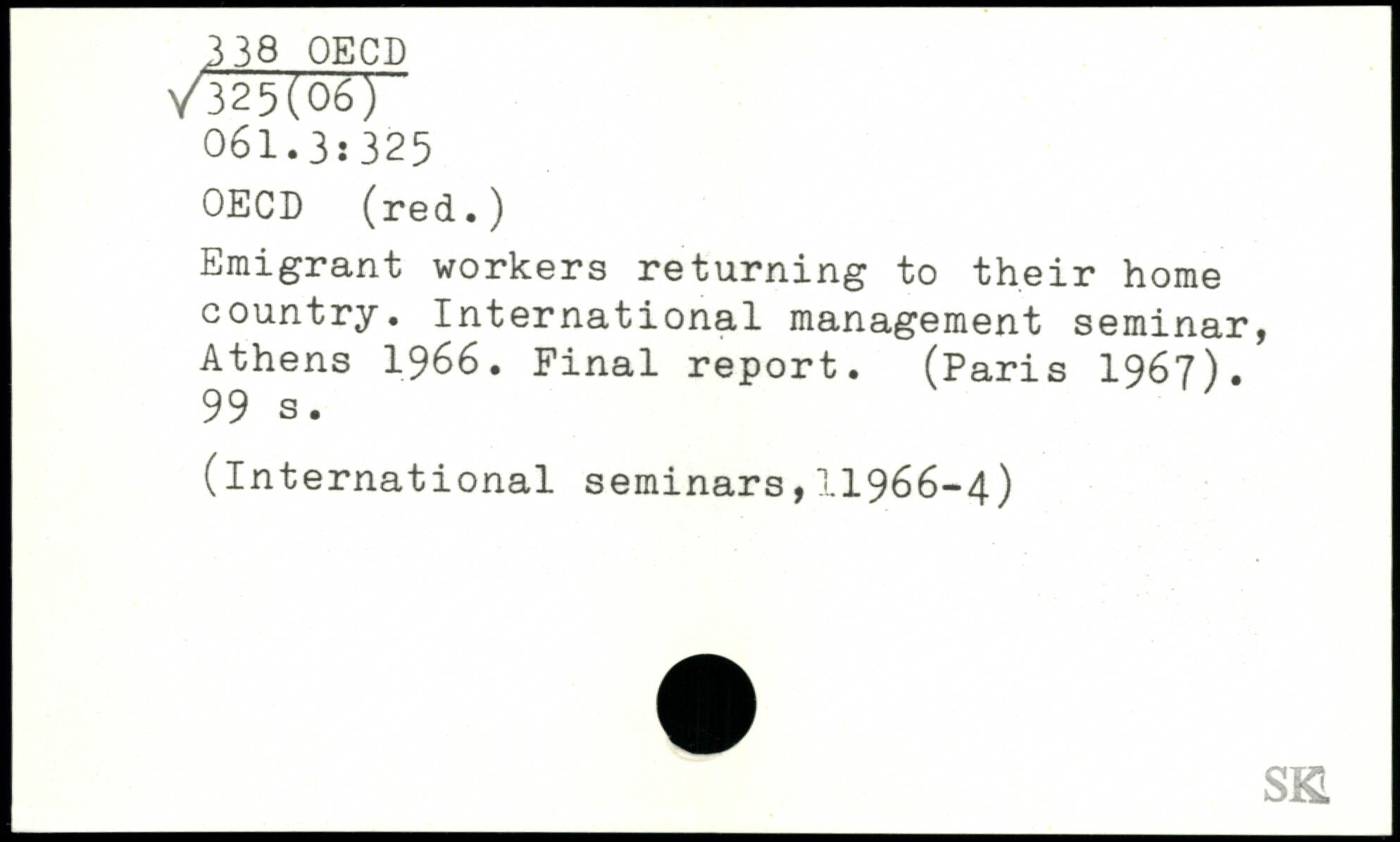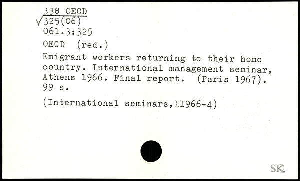 Emigrant workers returning to their home country. International management seminar, Athens 1966. Final report. (