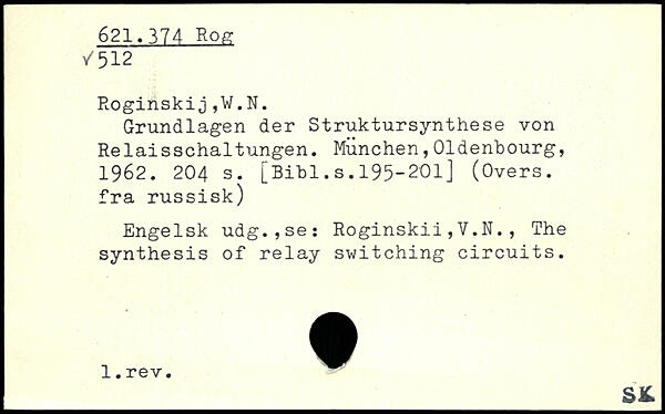 Grundlagen der Struktursynthese von Relaisschaltungen.