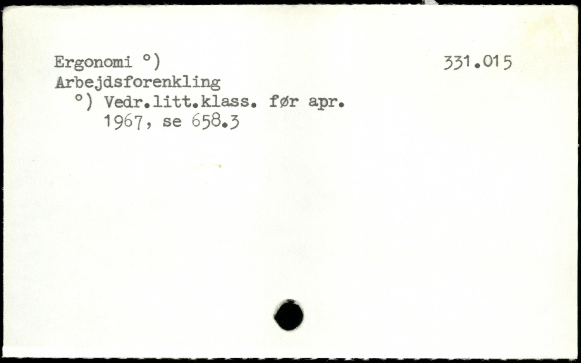 Arbejdsforenkling .) Vedr.litt.klass. før apr. 1967, se 658.3
