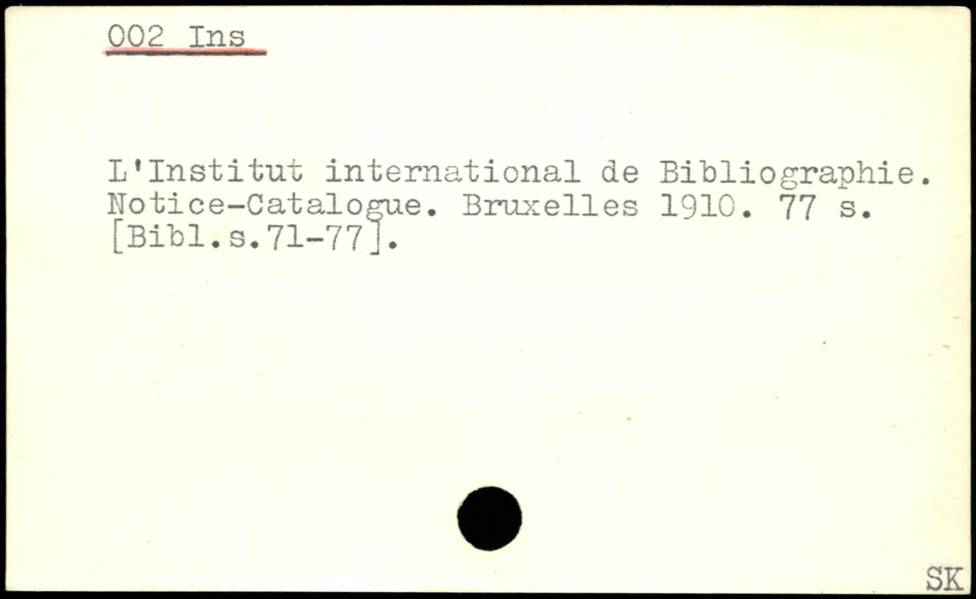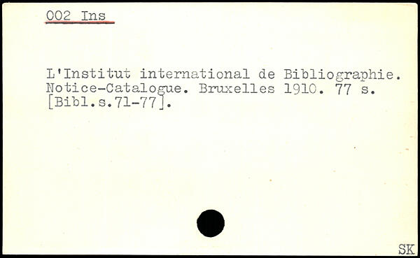 L.Institut international de Bibliographie. Notice-Catalogue.