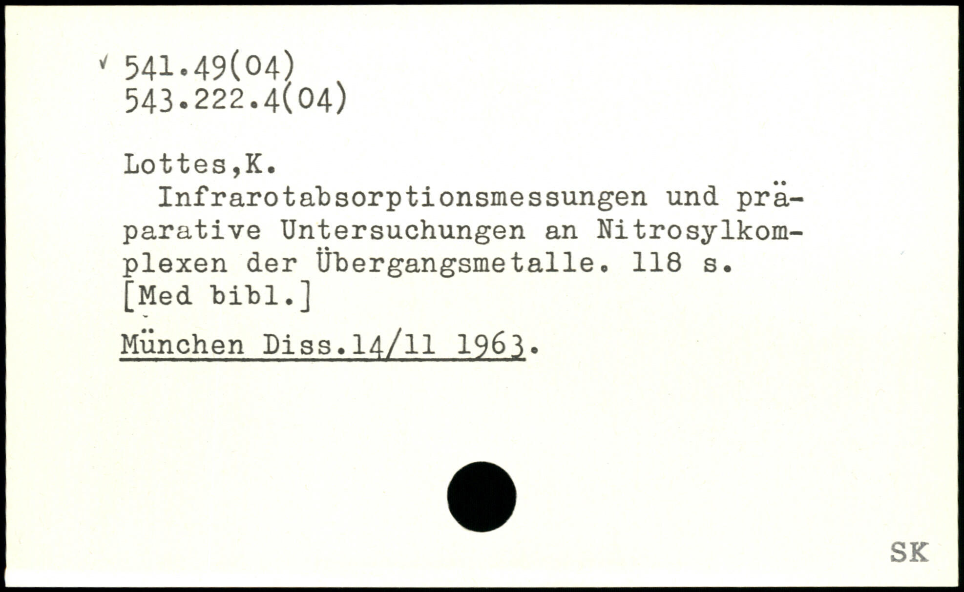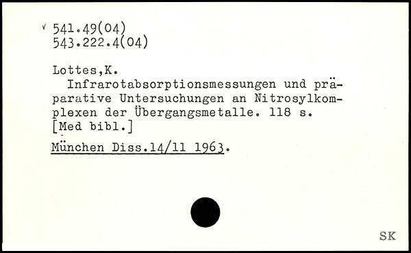 Infrarotabsorptionsmessungen und präparative Untersuchungen an Nitrosylkom-plexen der Übergangsmetalle.