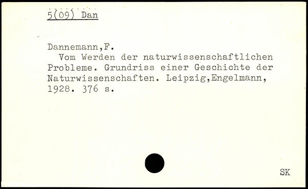 Vom Werden der naturwissenschaftlichen Probleme. Grundriss einer Geschichte der Naturwissenschaften.