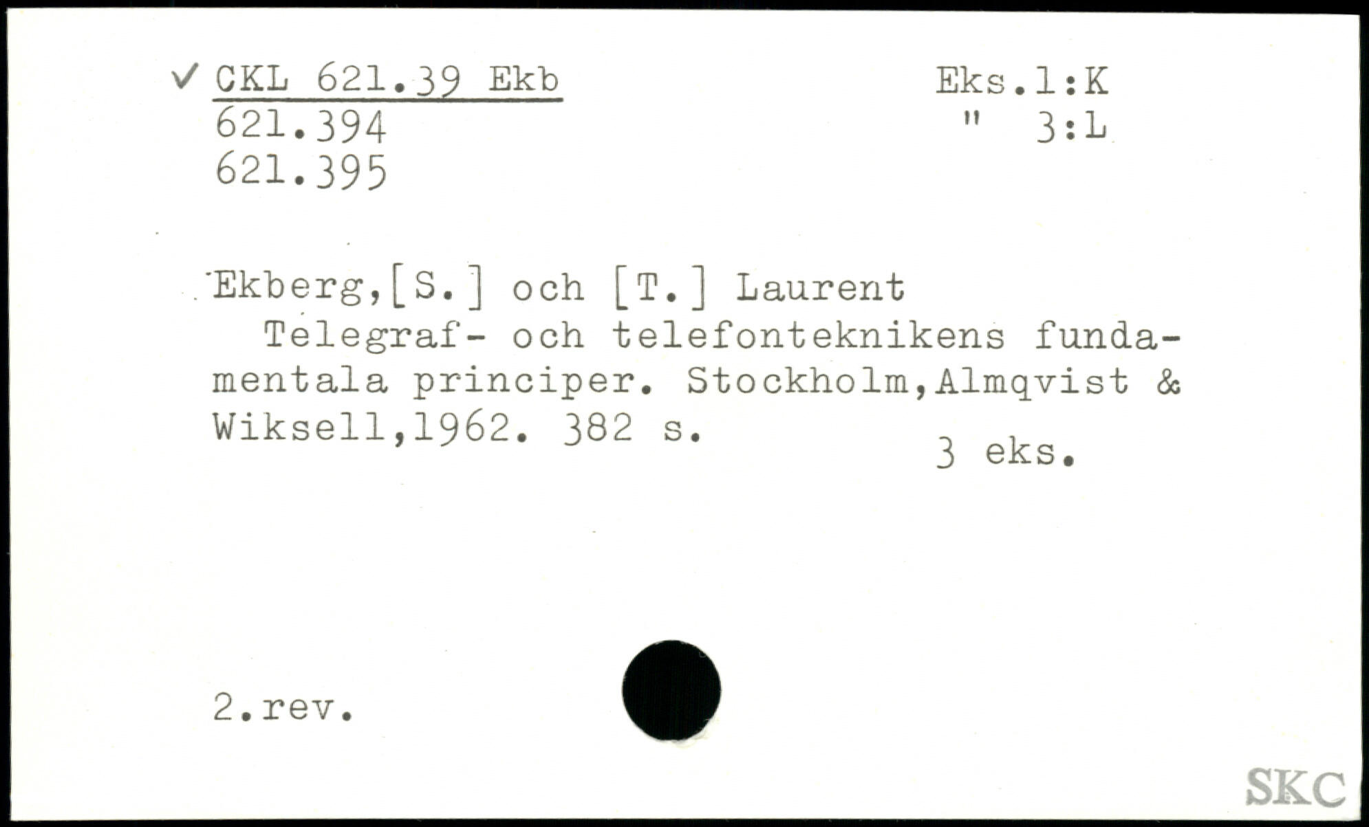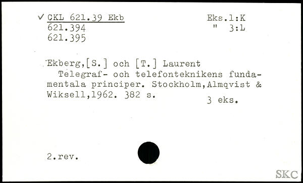 'Ekberg,[S.] och [T.] Laurent Telegraf- och telefonteknikens fundamentala principer.