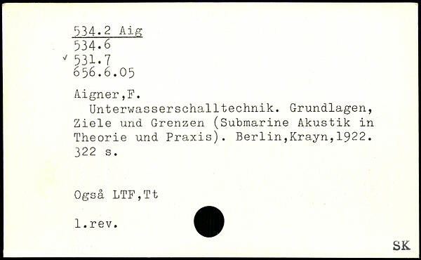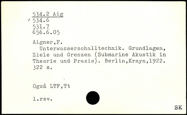 Unterwasserschalltechnik. Grundlagen, Ziele und Grenzen (Submarine Akustik in Theorie und Praxis).