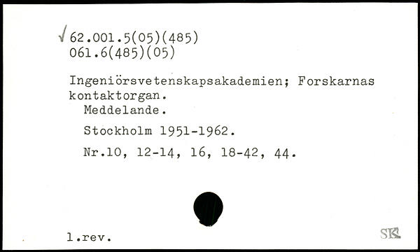 Ingeniörsvetenskapsakademien; Forskarnas kontaktorgan. Meddelande.