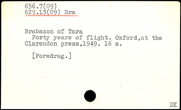 Brabazon of Tara Forty years of flight. Oxford,at the Clarendon press,1949.