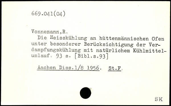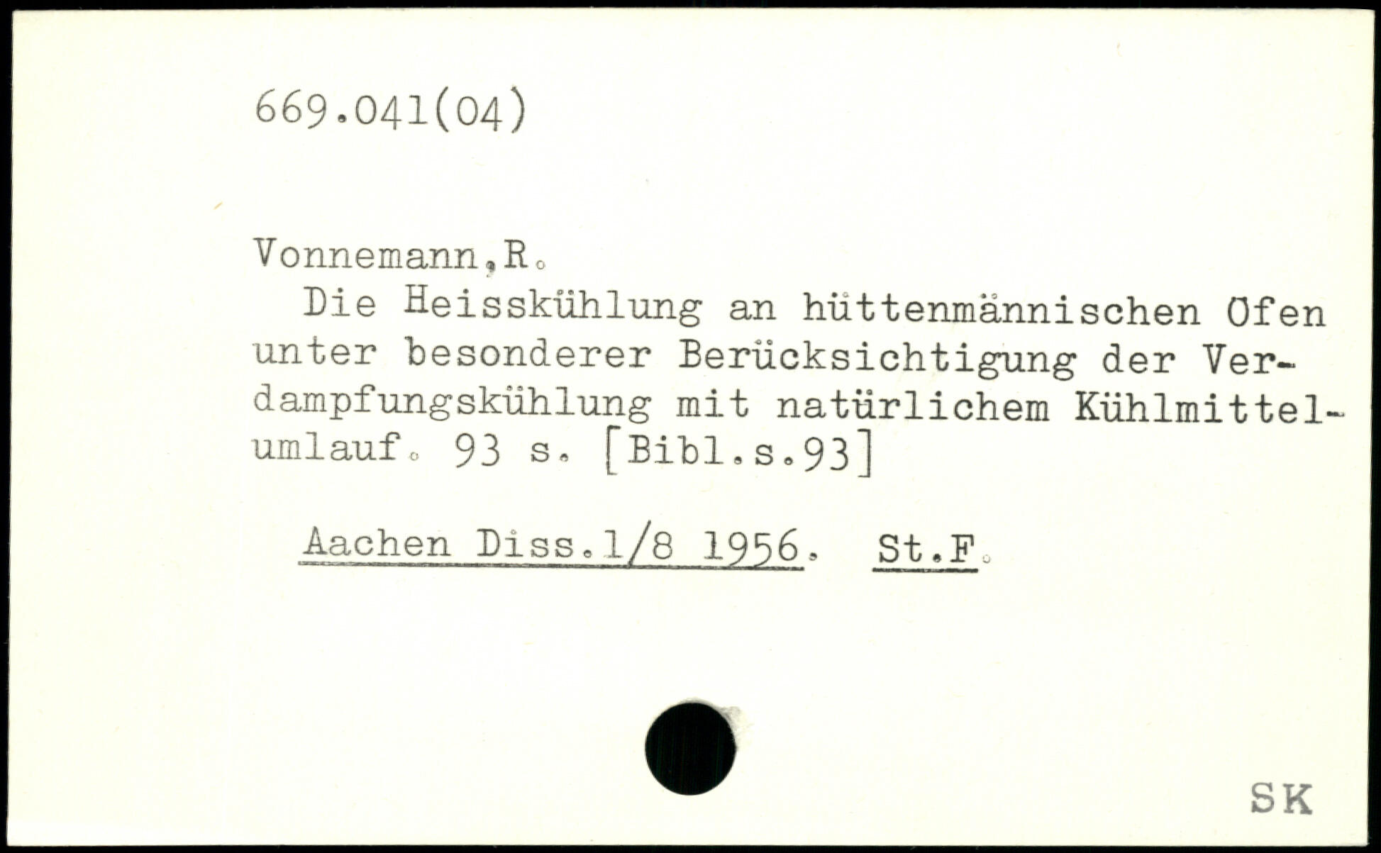 Die Heisskühlung an hüttenmännischen Ofen unter besonderer Berücksichtigung der Verdampfungskühlung mit natürlichem Kühlmittelumlauf o