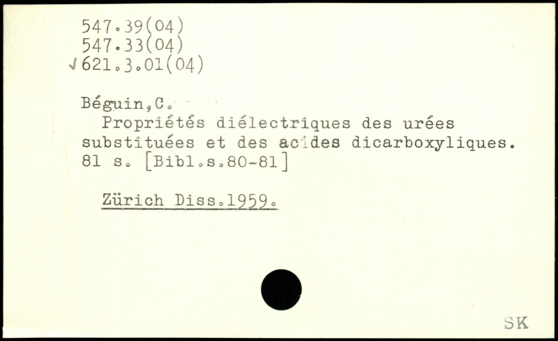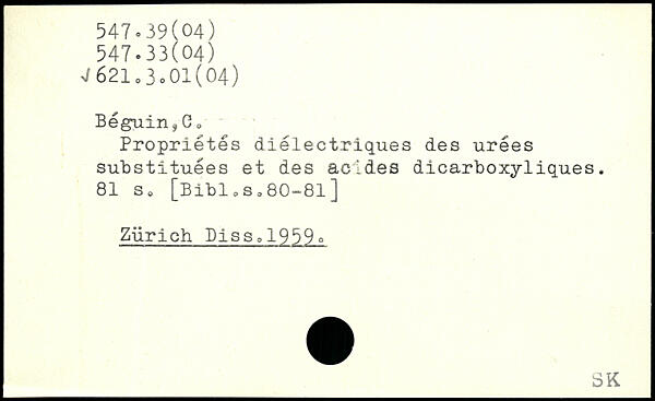 Propriétés diélectriques des urées substituées et des acides dicarboxyliques.