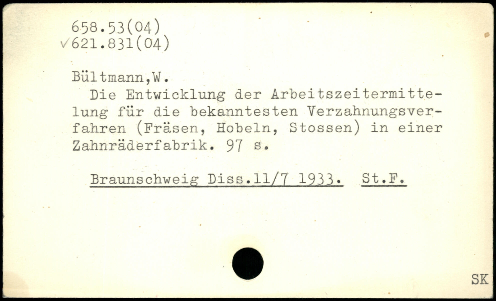 Die Entwicklung der Arbeitszeitermitte-lung für die bekanntesten Yerzahnungsver-fahren (Fräsen, Hobeln, Stossen) in einer Zahnräderfabrik.