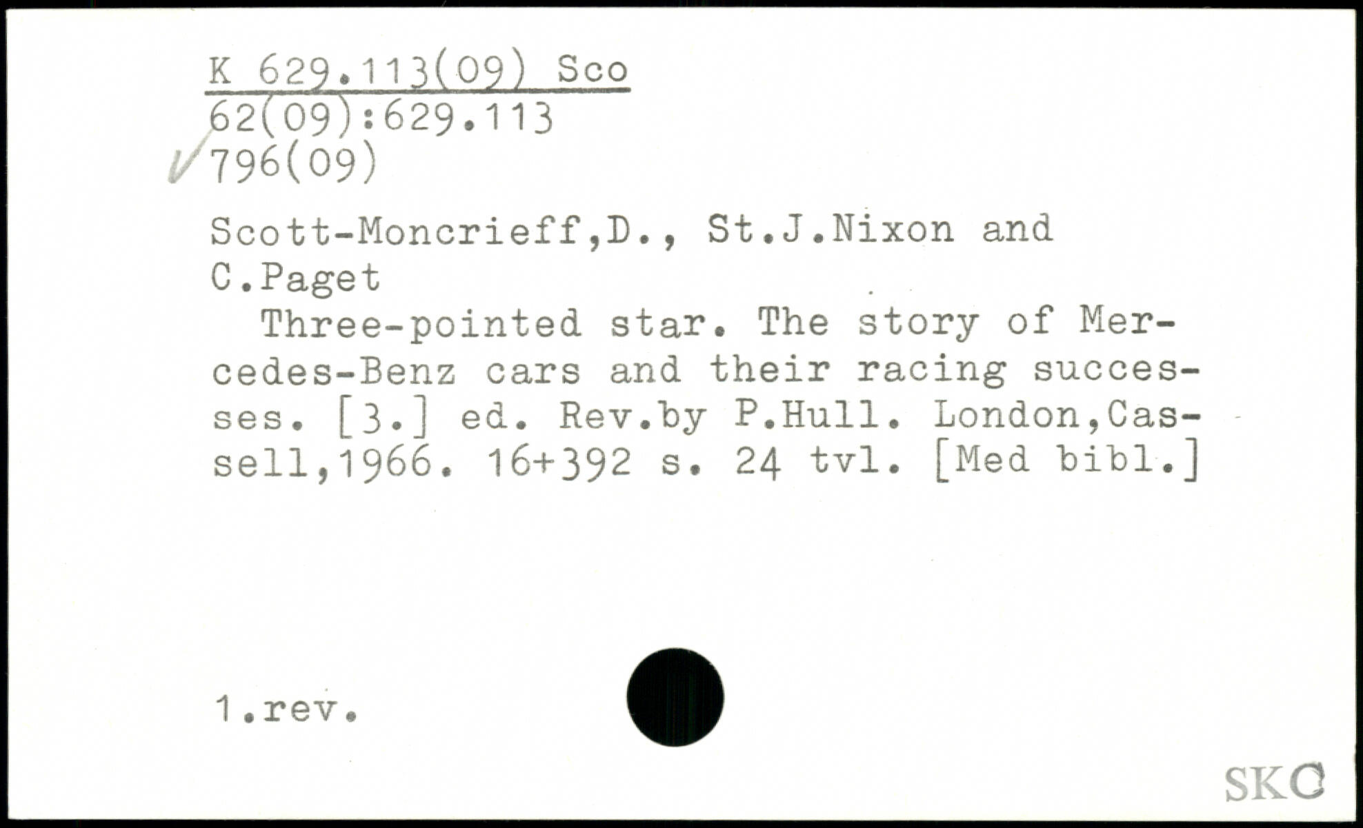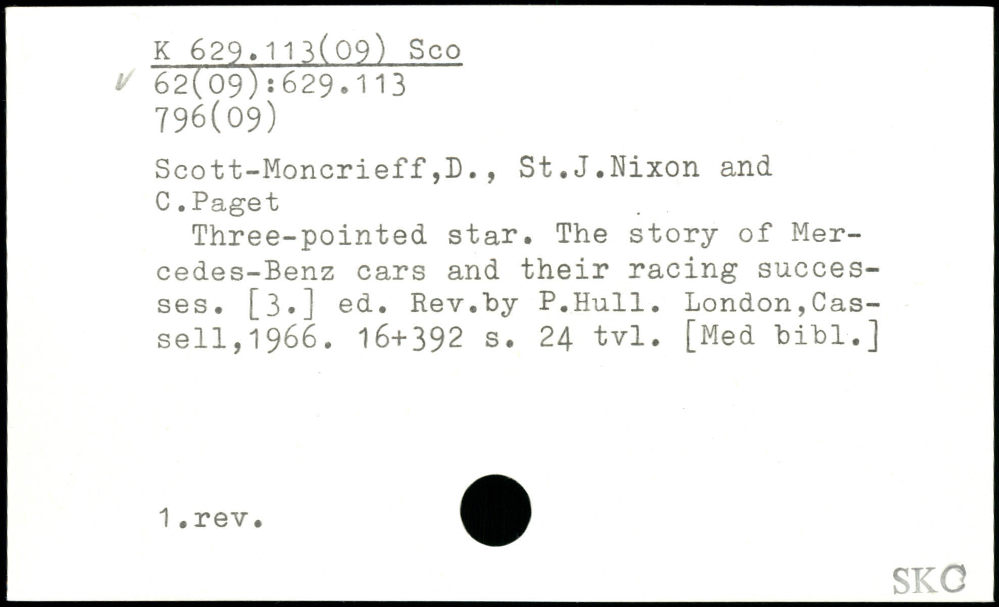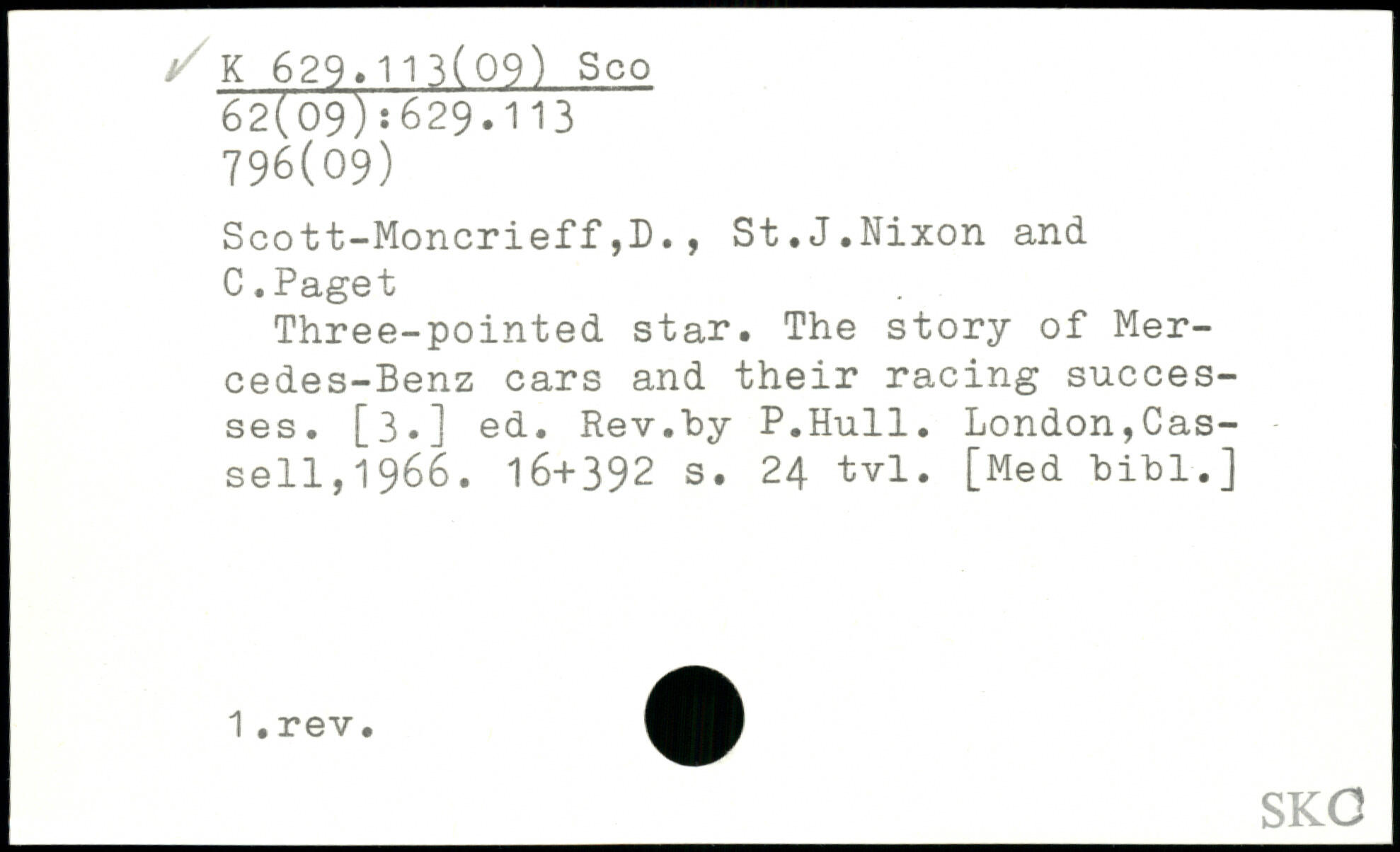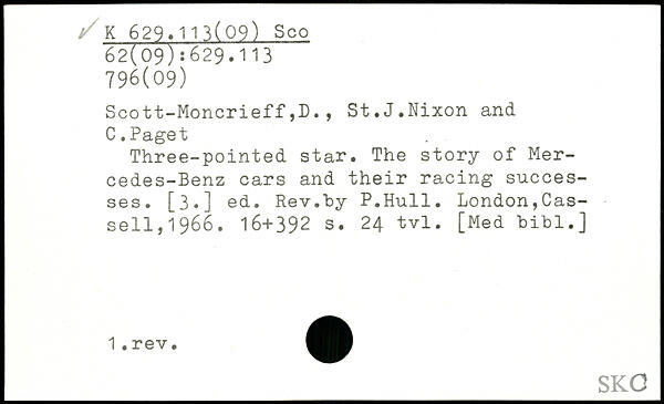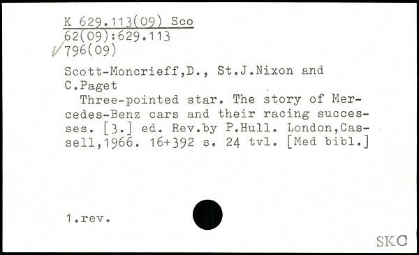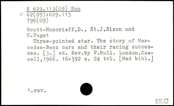Scott-Moncrieff,D., St.J.Nixon and C.Paget Three-pointed star. The story of Mercedes-Benz cars and their racing successes. [3.] ed. Rev.by P.Hull.