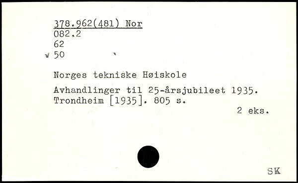 Norges tekniske Hoiskole Avhandlinger til 25-årsjubileet 1935.
