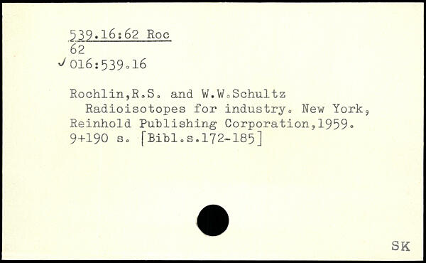 Rochlin,RaSa and W.WoSchultz Radioisotopes for industry, New York? Reinhold Publishing Corporation,1959