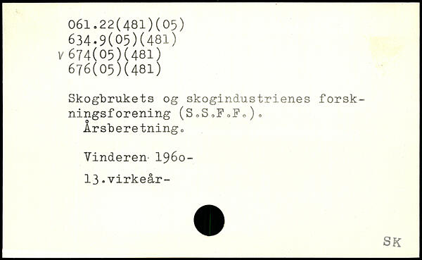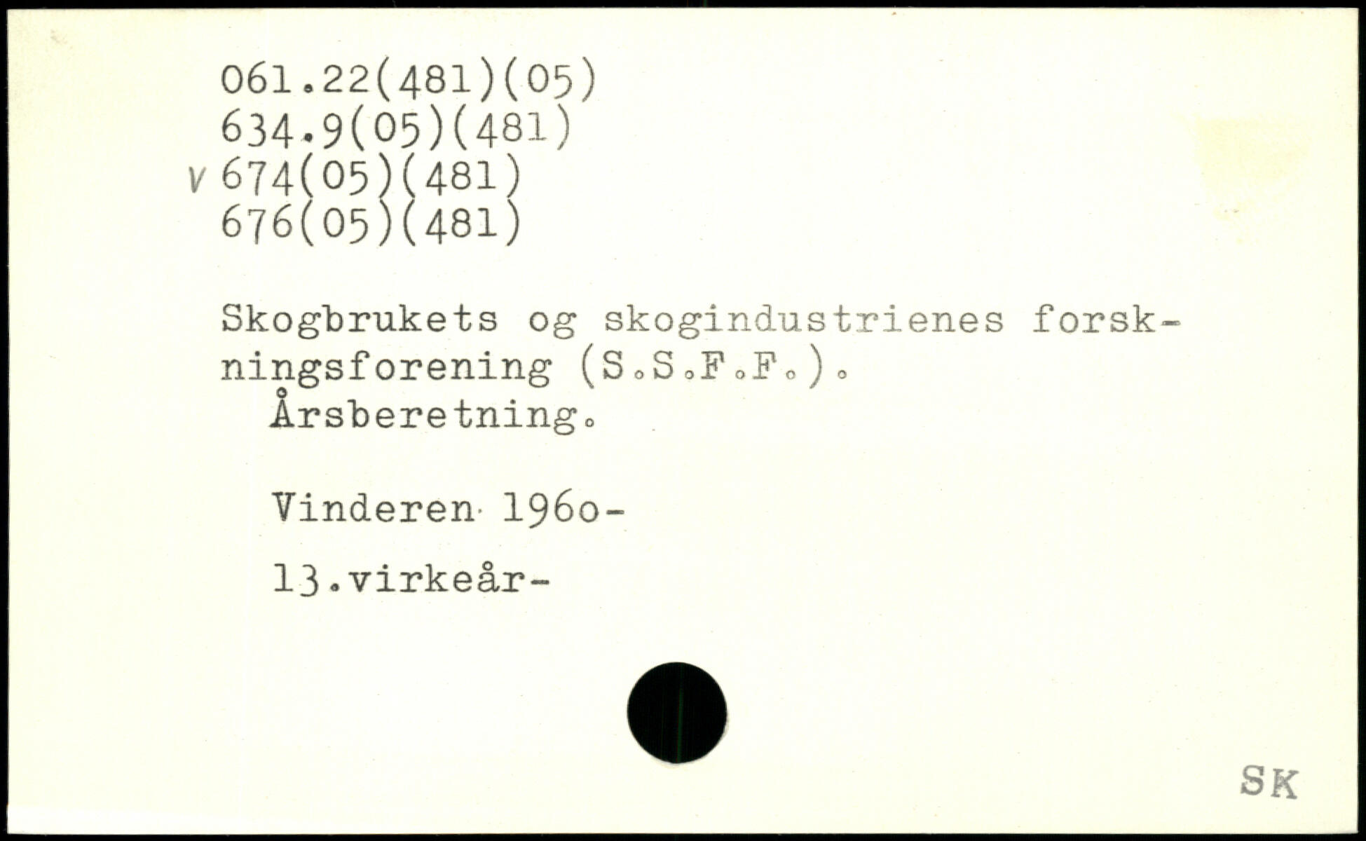 Skogbrukets og skogindustrienes forskningsf orening (S0S0F0F0), Årsberetningc Vinderen 1960-13.virkeår-