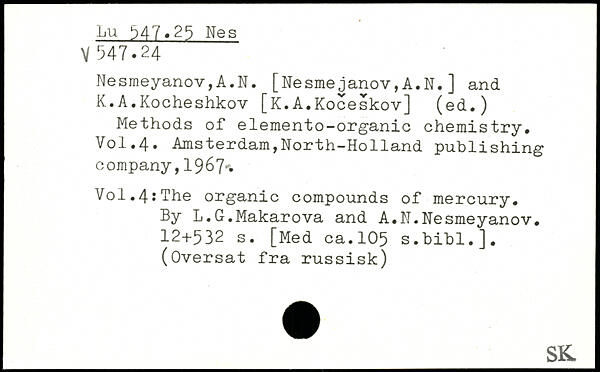 Nesmeyanov,A.N. [Nesmejanov,A.N.] and K.A.Kocheshkov [K.A.Koceskov] (ed.) Methods of elemento-organic chemistry.