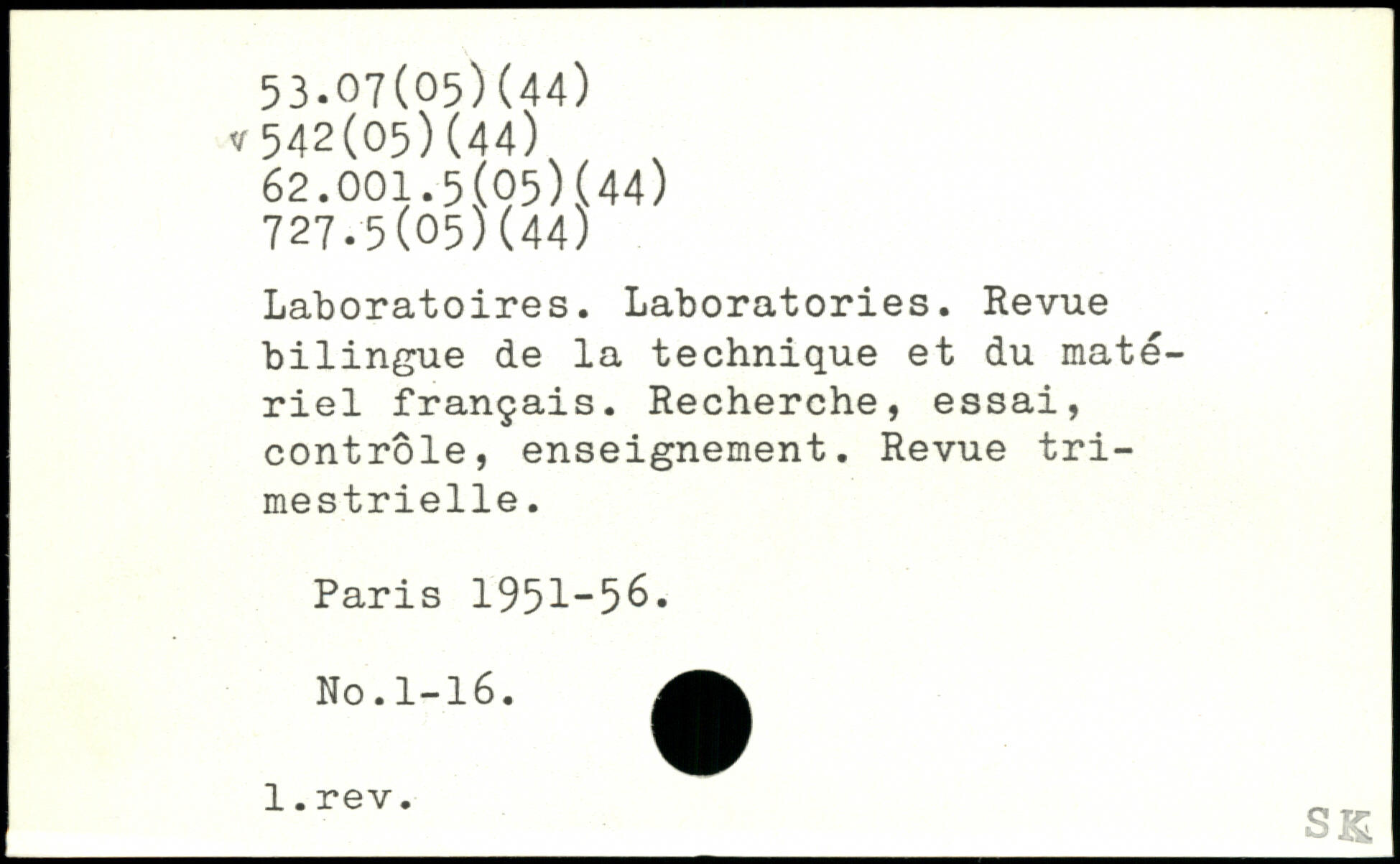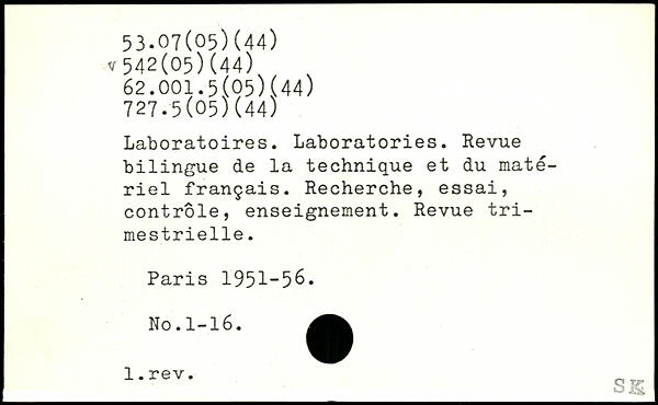 Laboratoires. Laboratories. Revue bilingue de la technique et du matériel français. Recherche, essai, contrôle, enseignement. Revue trimestrielle.
