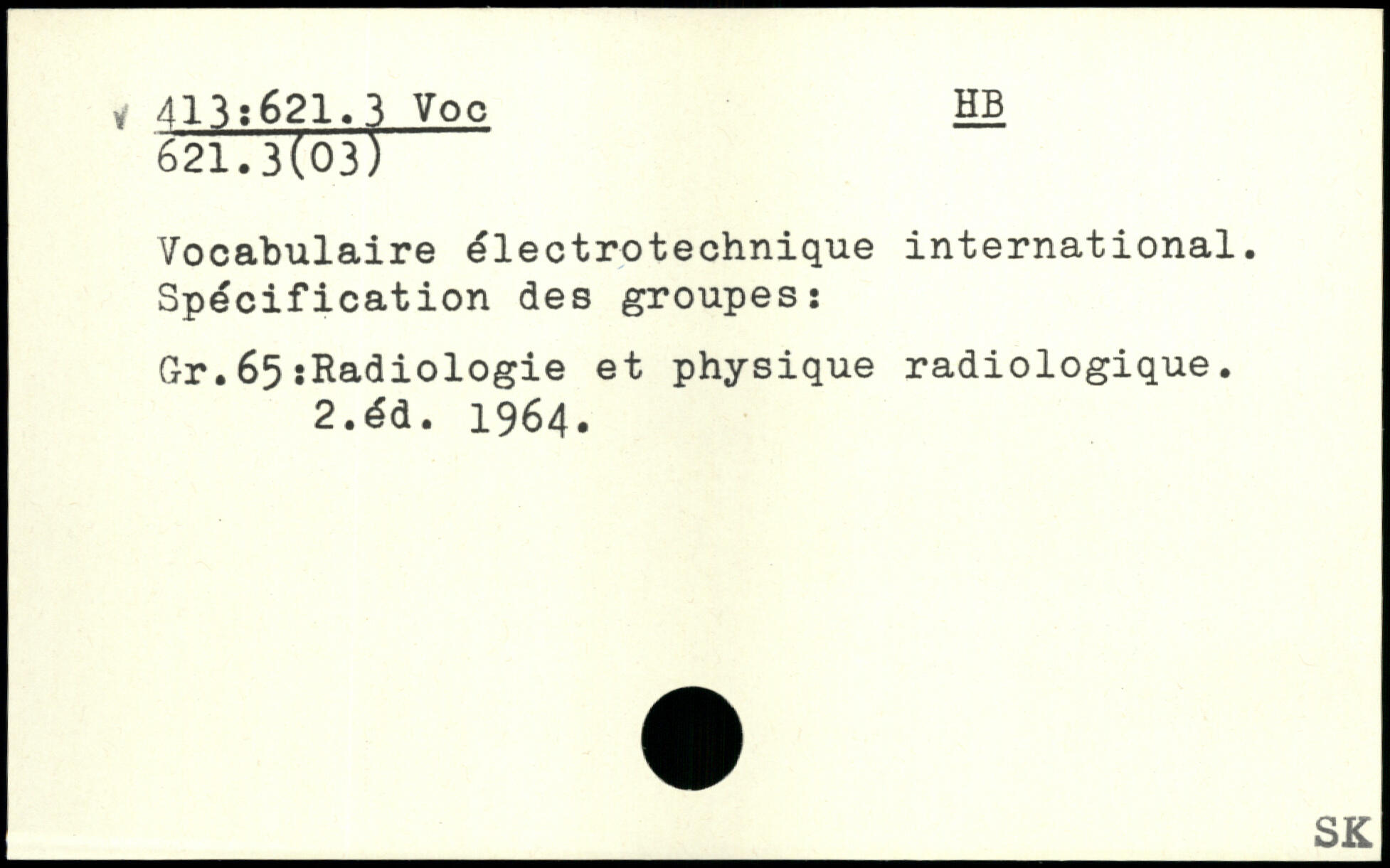 Vocabulaire électrotechnique international. Spécification des groupes: Gr.65ïHadiologie et physique radiologique. 2.éd. 1964.
