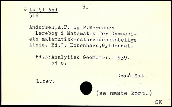 Lærebog i Matematik for Gymnasiets matematisk-naturvidenskabelige Linie.