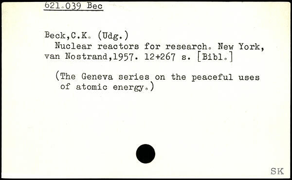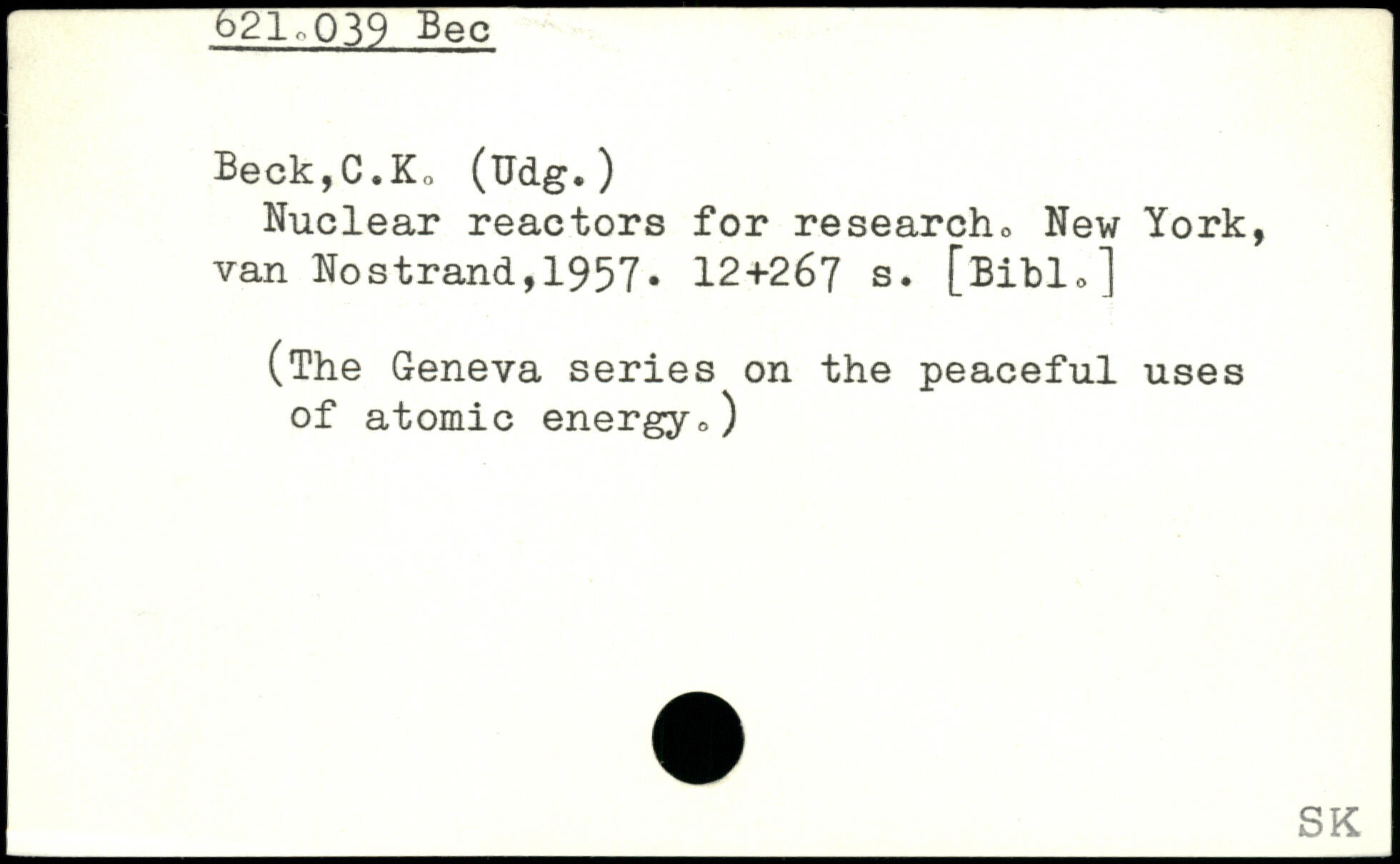 Nuclear reactors for research,, New York, van Nostrand,1957.