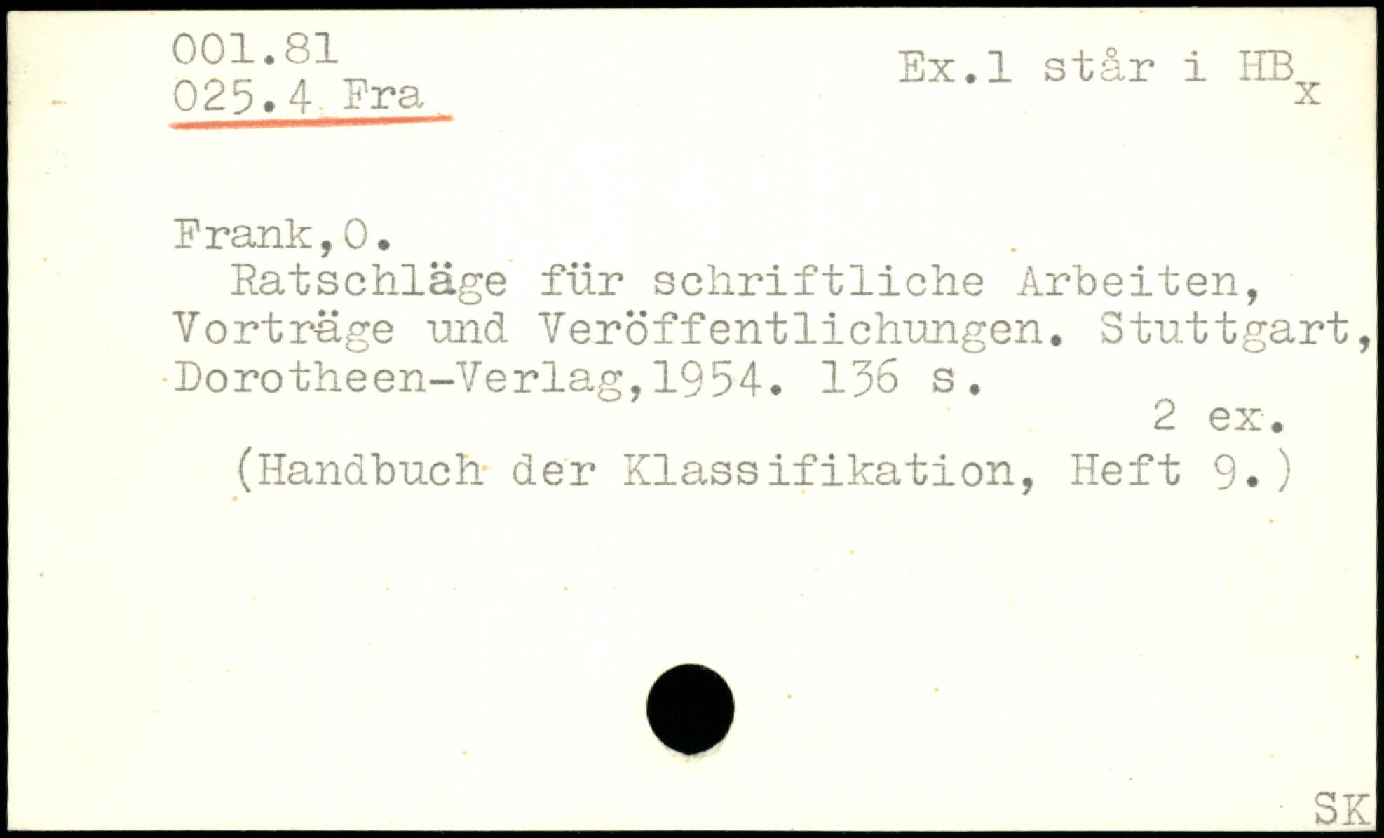 OOl-®1 Ex.l stär i HB j - 025.4 Fra x Frank,0. Ratschläge für schriftliche Arbeiten, Vorträge und Veröffentlichungen.