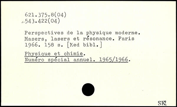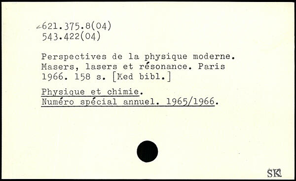 Perspectives de la physique moderne. Masers, lasers et résonance.