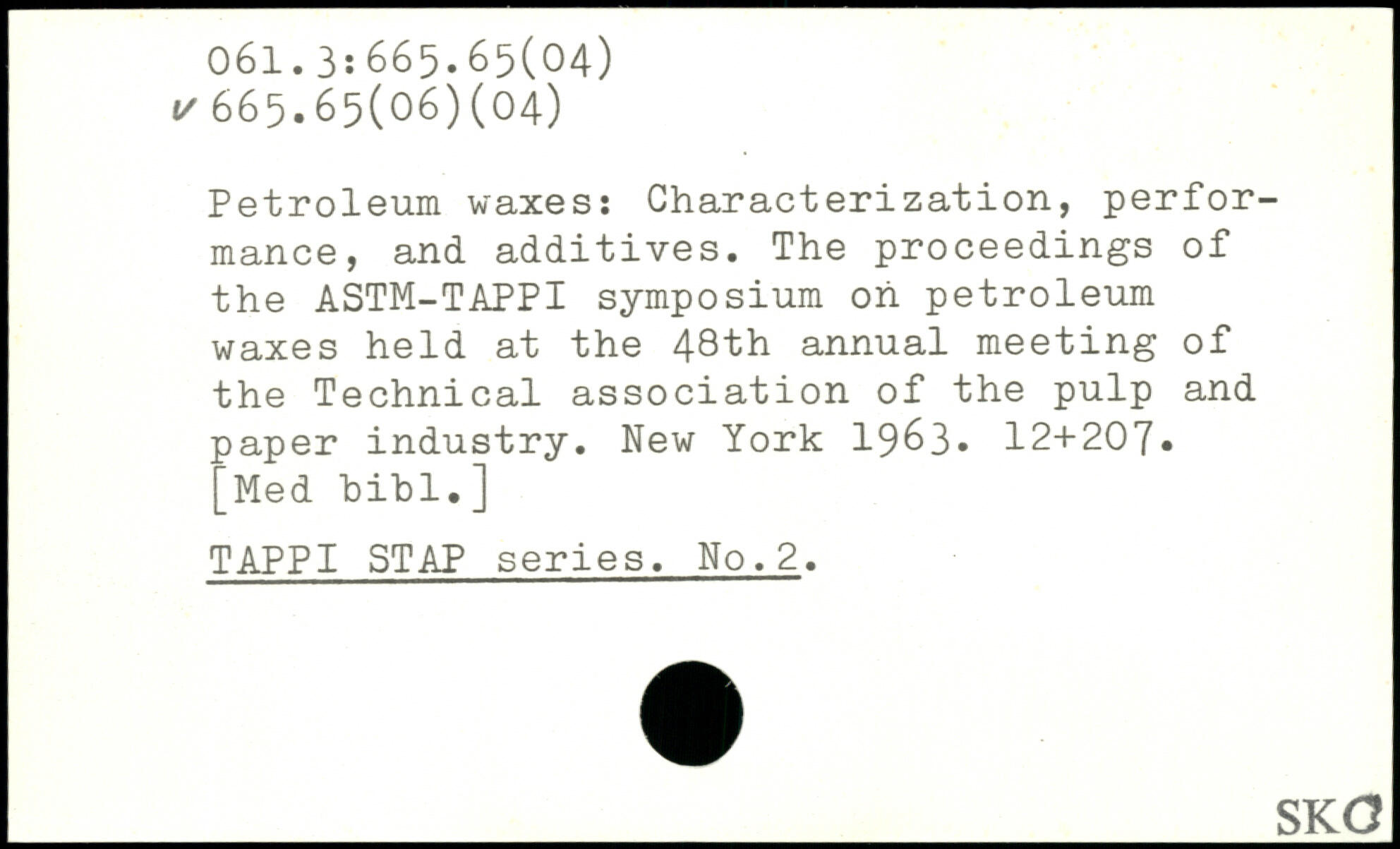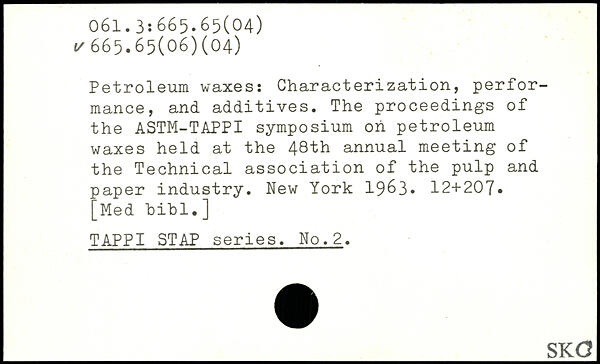 Petroleum waxes: Characterization, performance, and additives. The proceedings of the ASTM-TAPPI symposium oh petroleum waxes held at the 48th annual meeting of the Technical association of the pulp and paper industry.