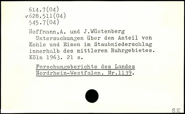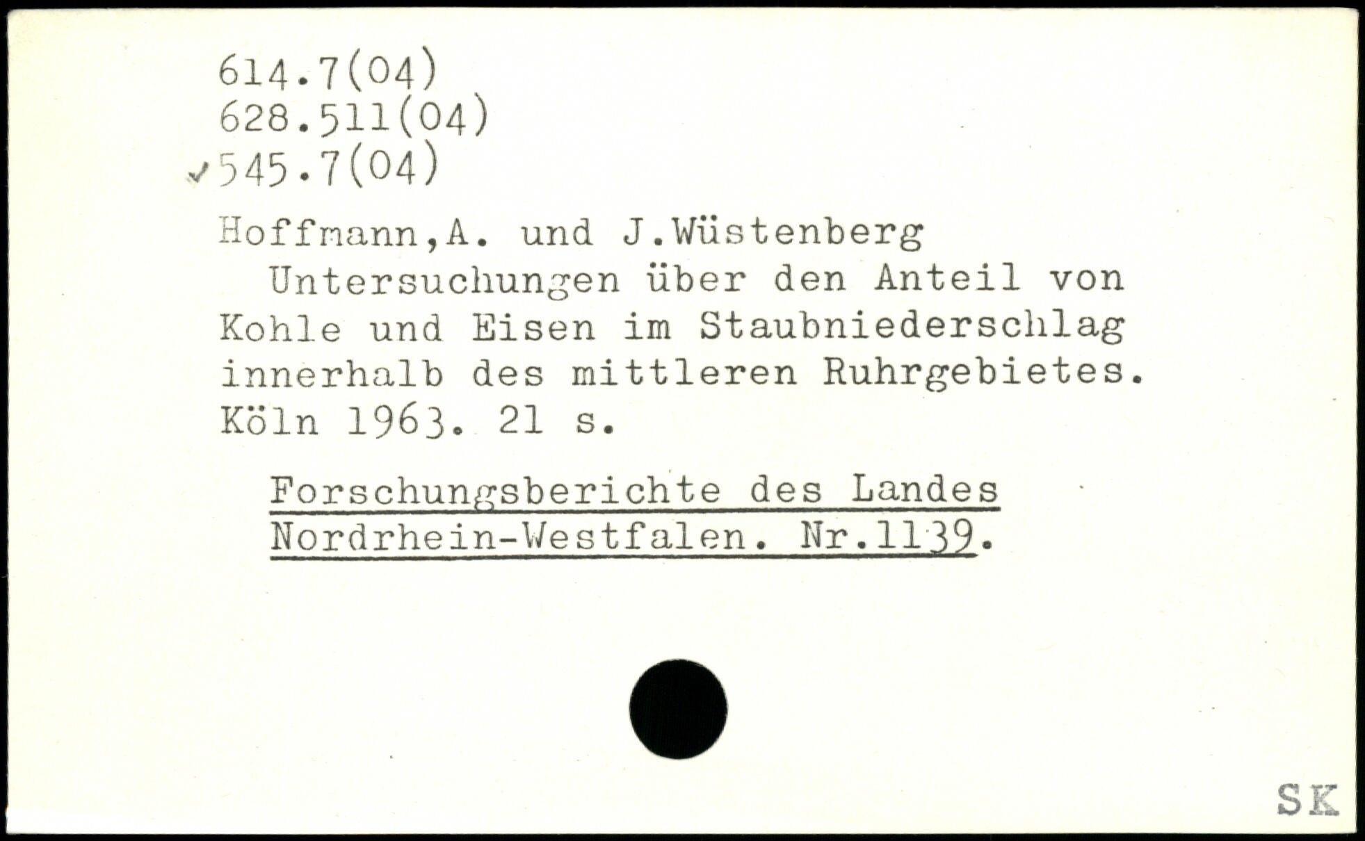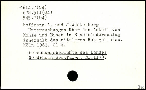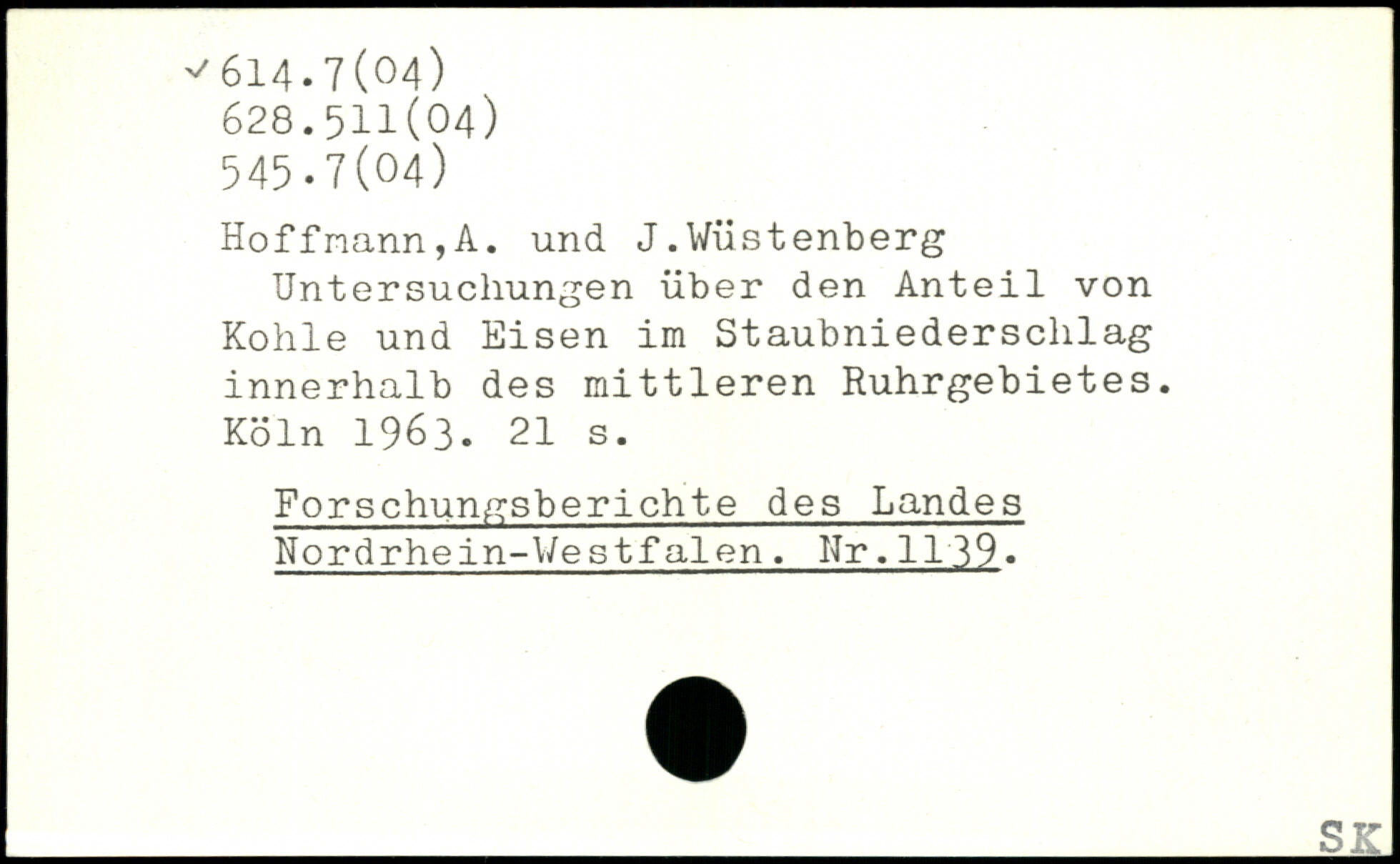 Untersuchungen über den Anteil von Kohle und Eisen im Staubniederschlag innerhalb des mittleren Ruhrgebietes.